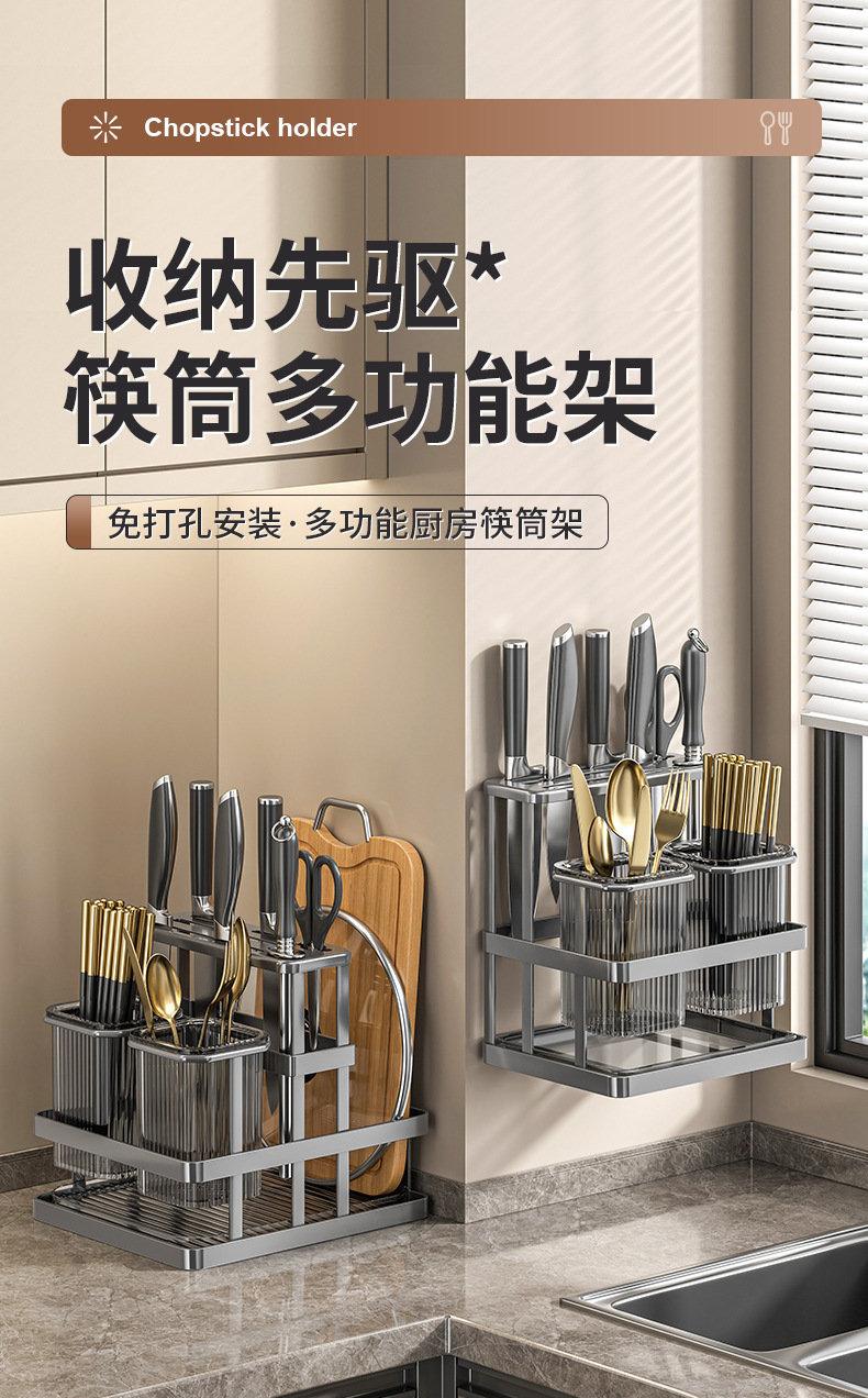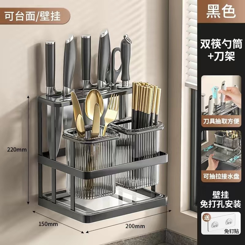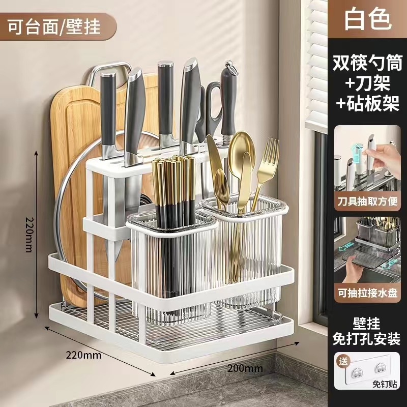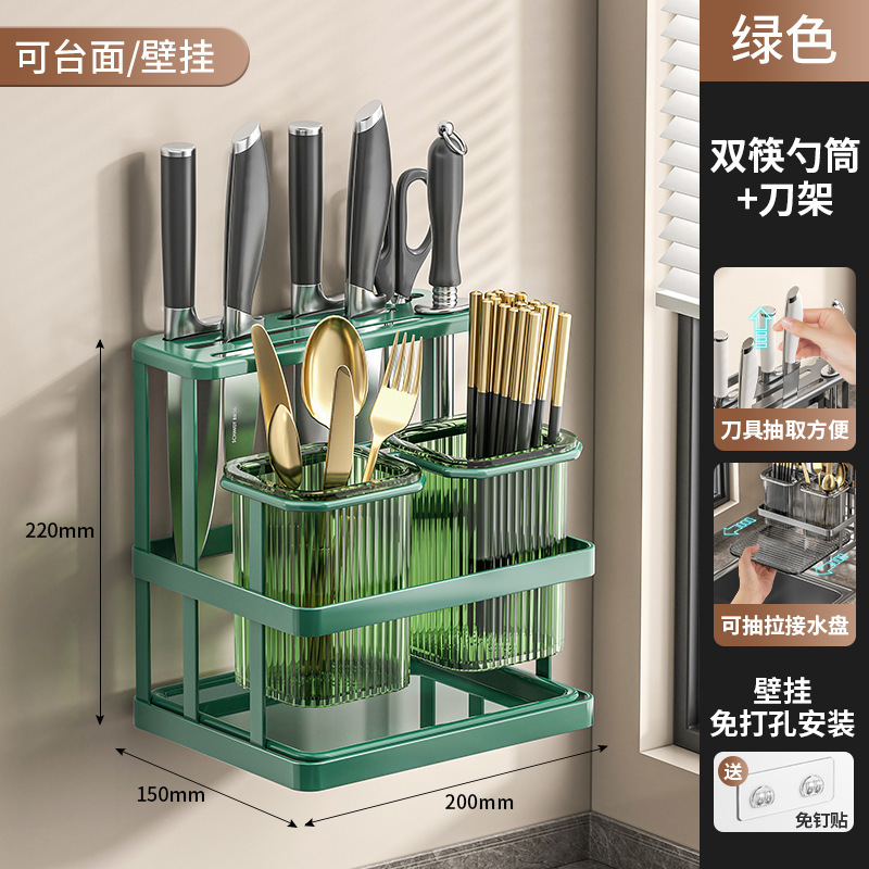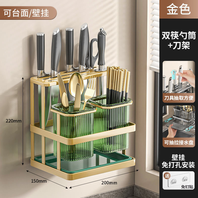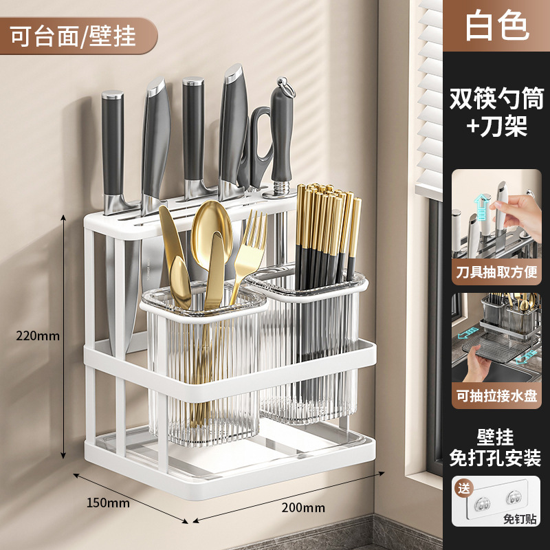 가벼운 고급 젓가락 케이지 주방 칼 홀더 다기능 통합 스토리지 랙 배수 칼 홀더 벽걸이 형 젓가락 양동이 젓가락 케이지