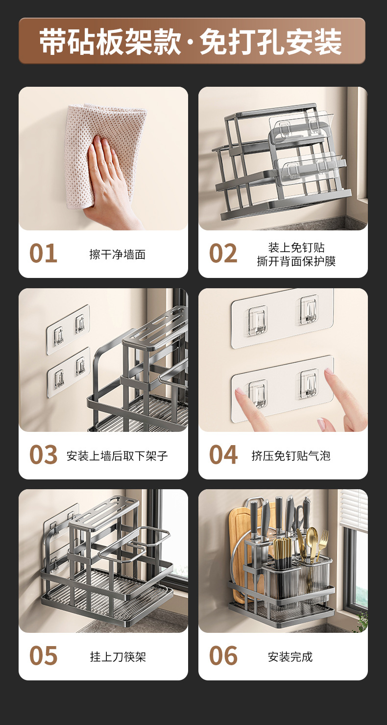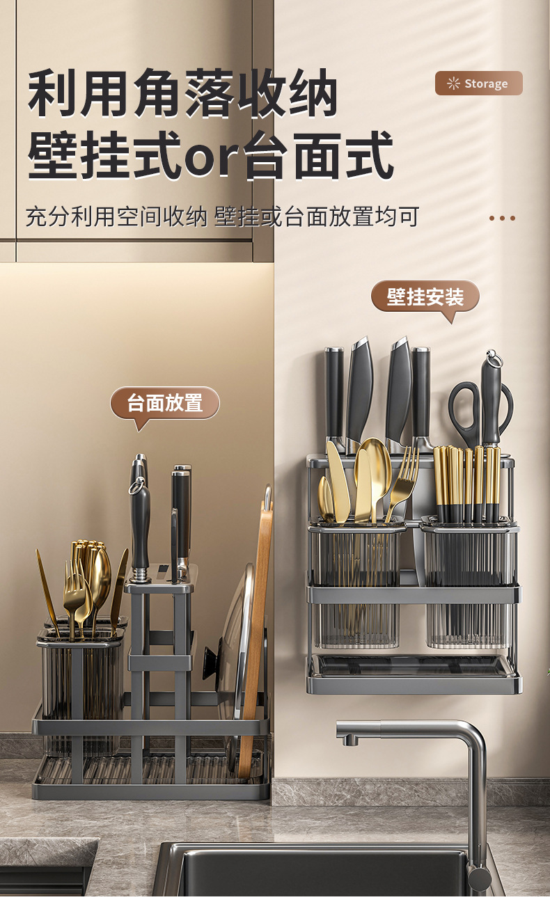 • 젓가락 꽂이와 칼 꽂이, 도마 꽂이 [건그레이] 벽걸이 패치 포함