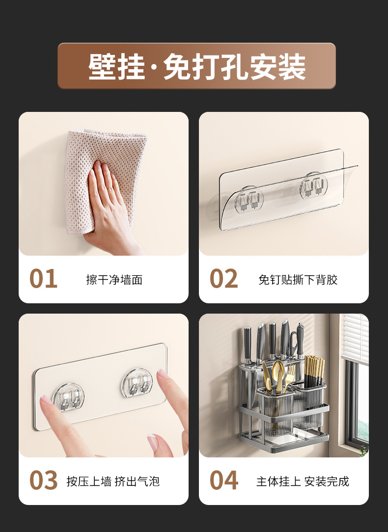 • 젓가락 꽂이와 칼 꽂이 [골드 투명 색상] 벽걸이 패치 포함
