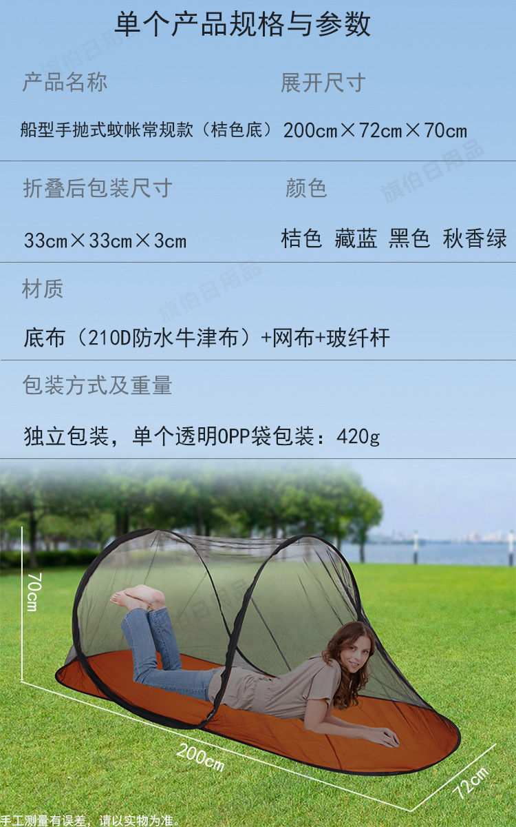 설치가 필요 없는 신형 모기장, 야외 캠핑 텐트, 휴대용 야외 침대, 배 모양 손으로 던지는 모기장