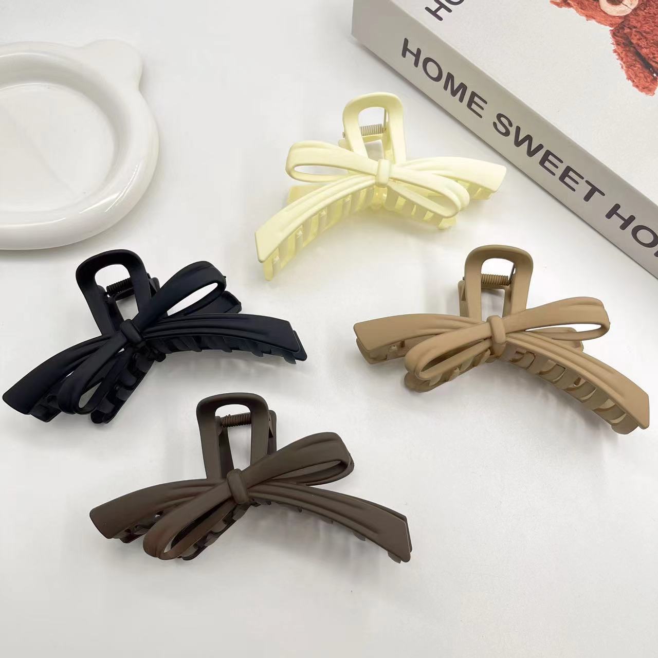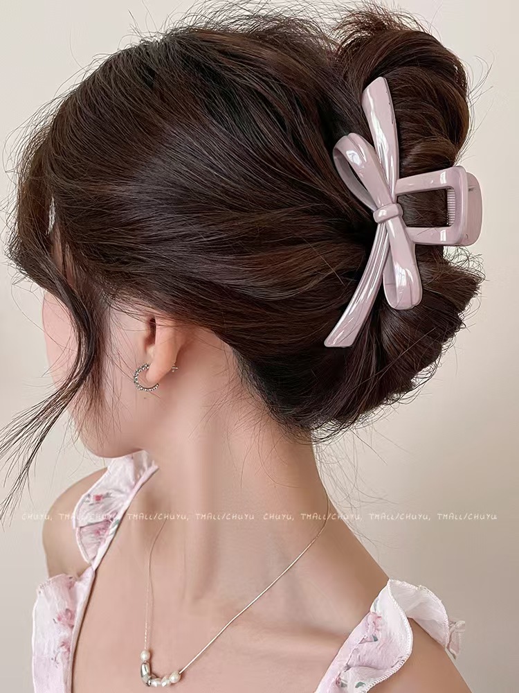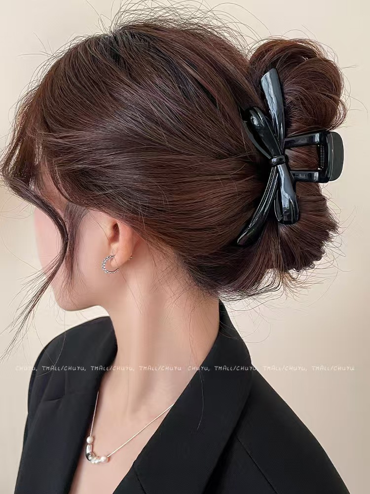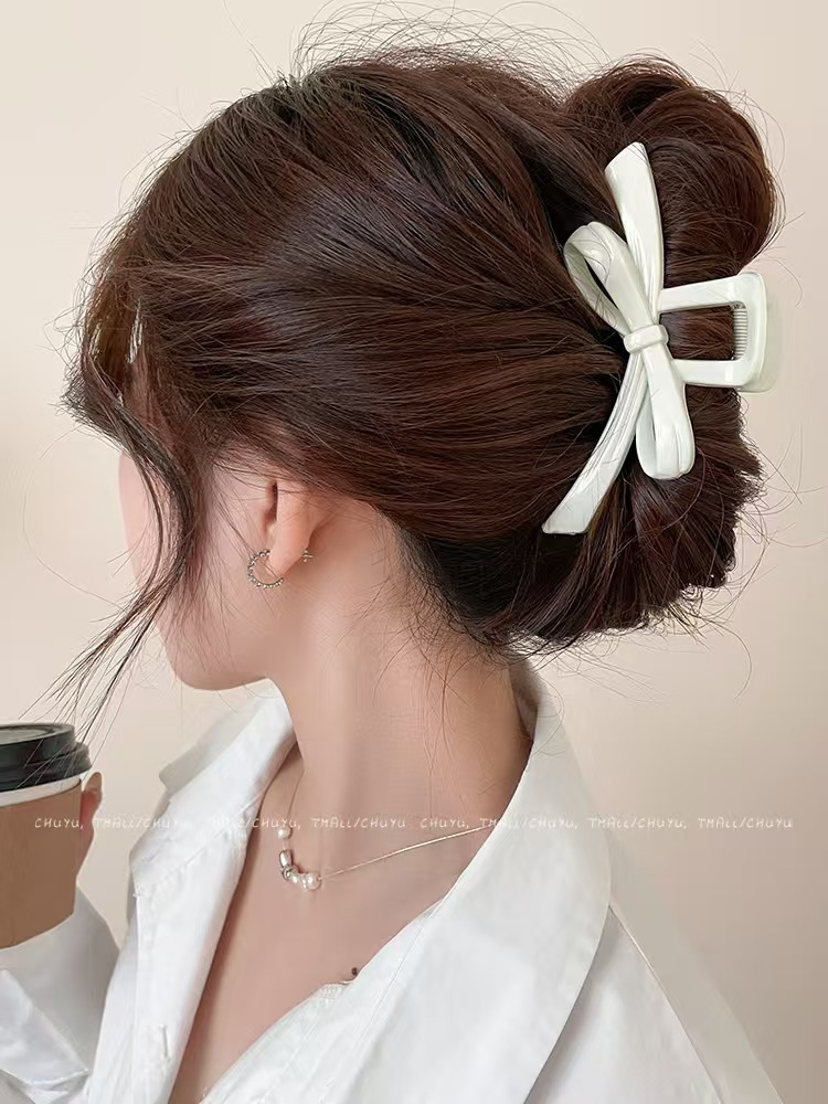 크로스보더 심플한 한국식 대형 리본 머리핀, 뒷머리용 헤어 액세서리, 여아용 목욕 접시 머리핀, 단색 상어 클립스토어 가기