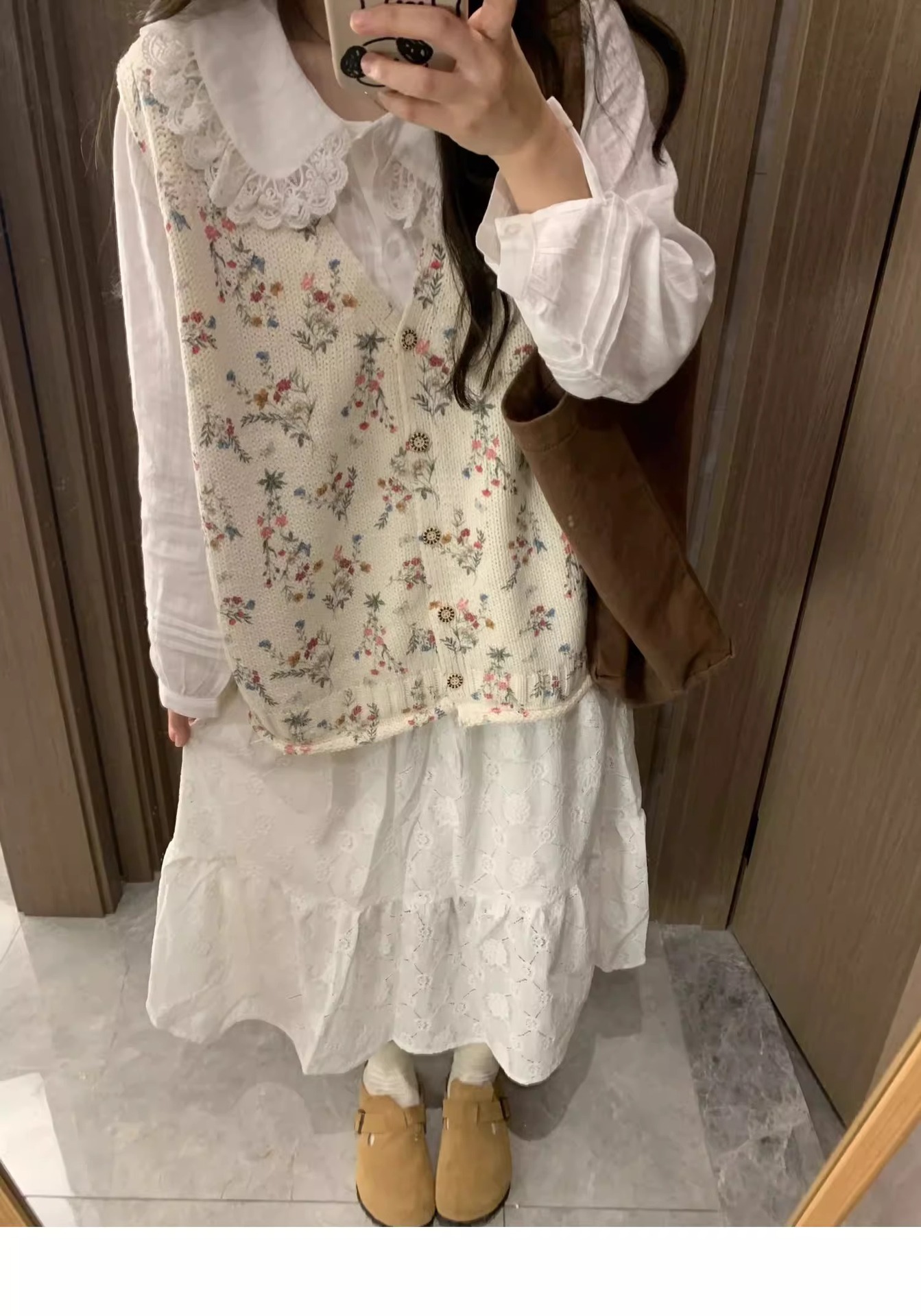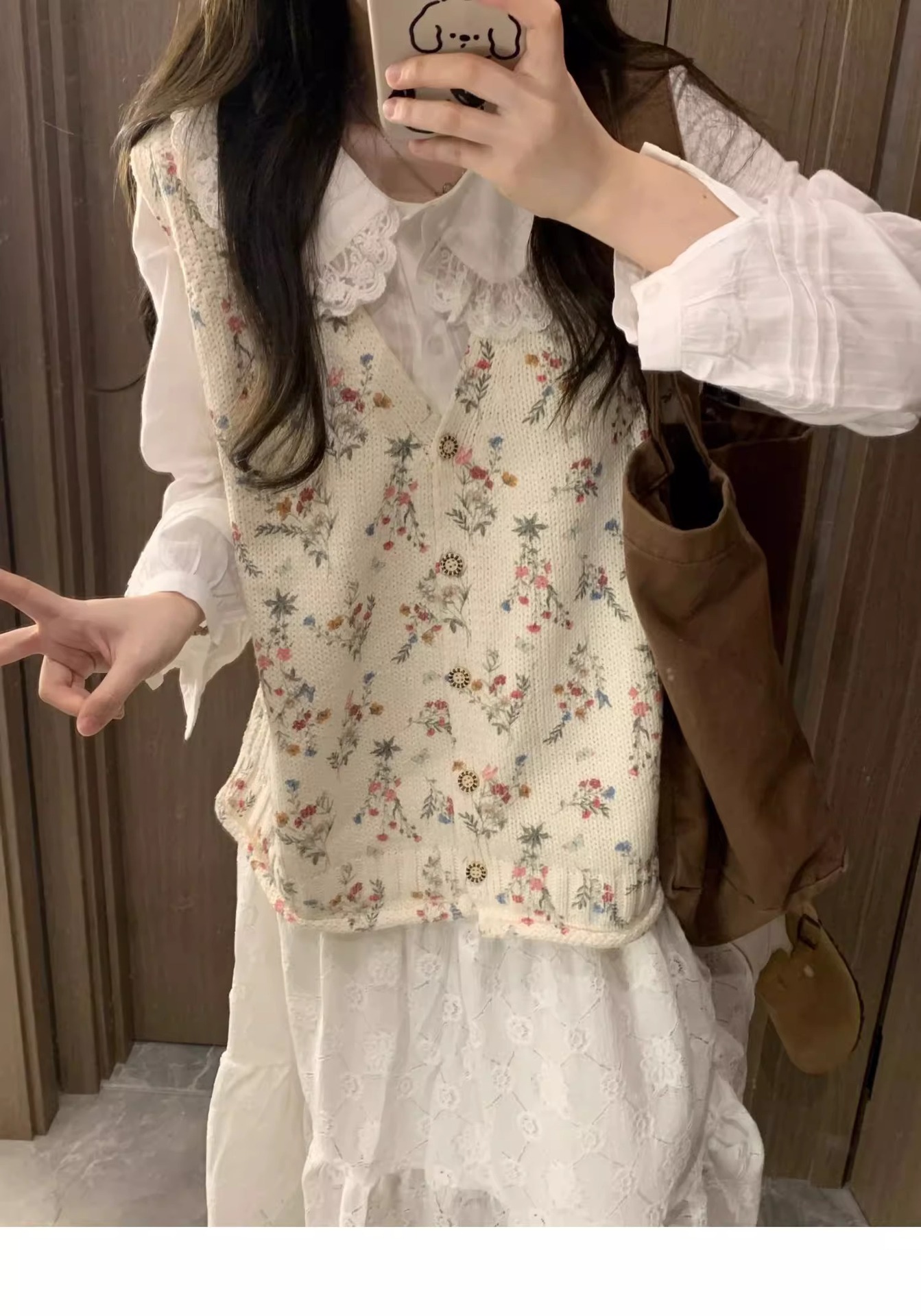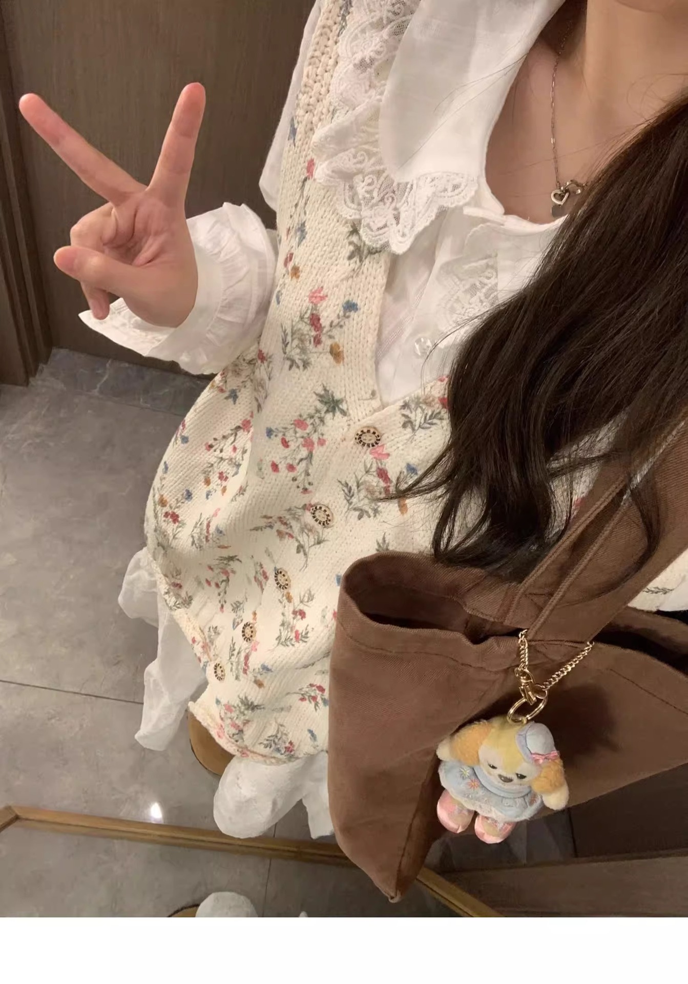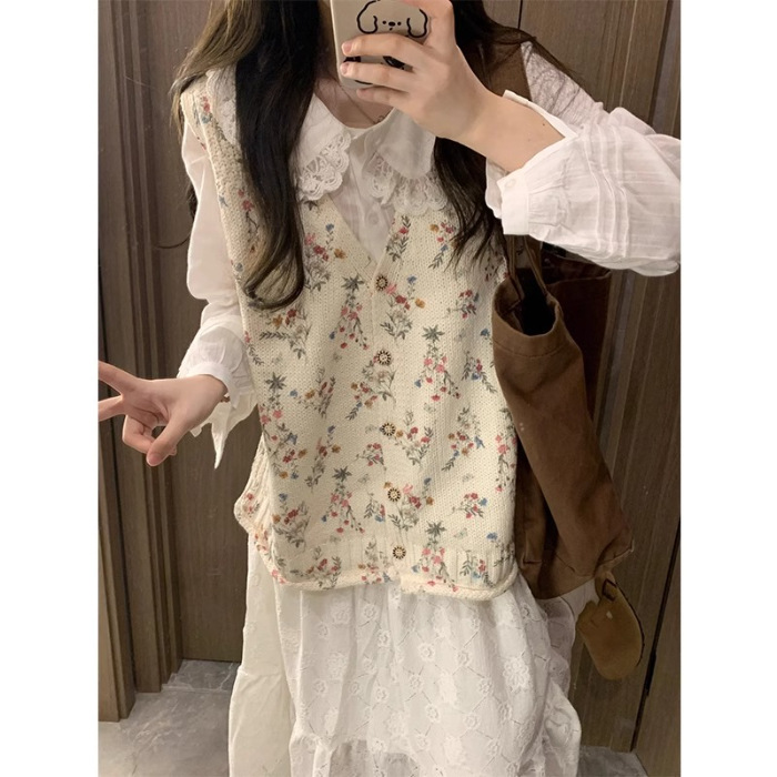 작은 사람들의 세트가있는 이른 봄 복장은 꽃 무늬 양복 조끼 셔츠 반 길이 스커트 투피스 세트 여성의 가을