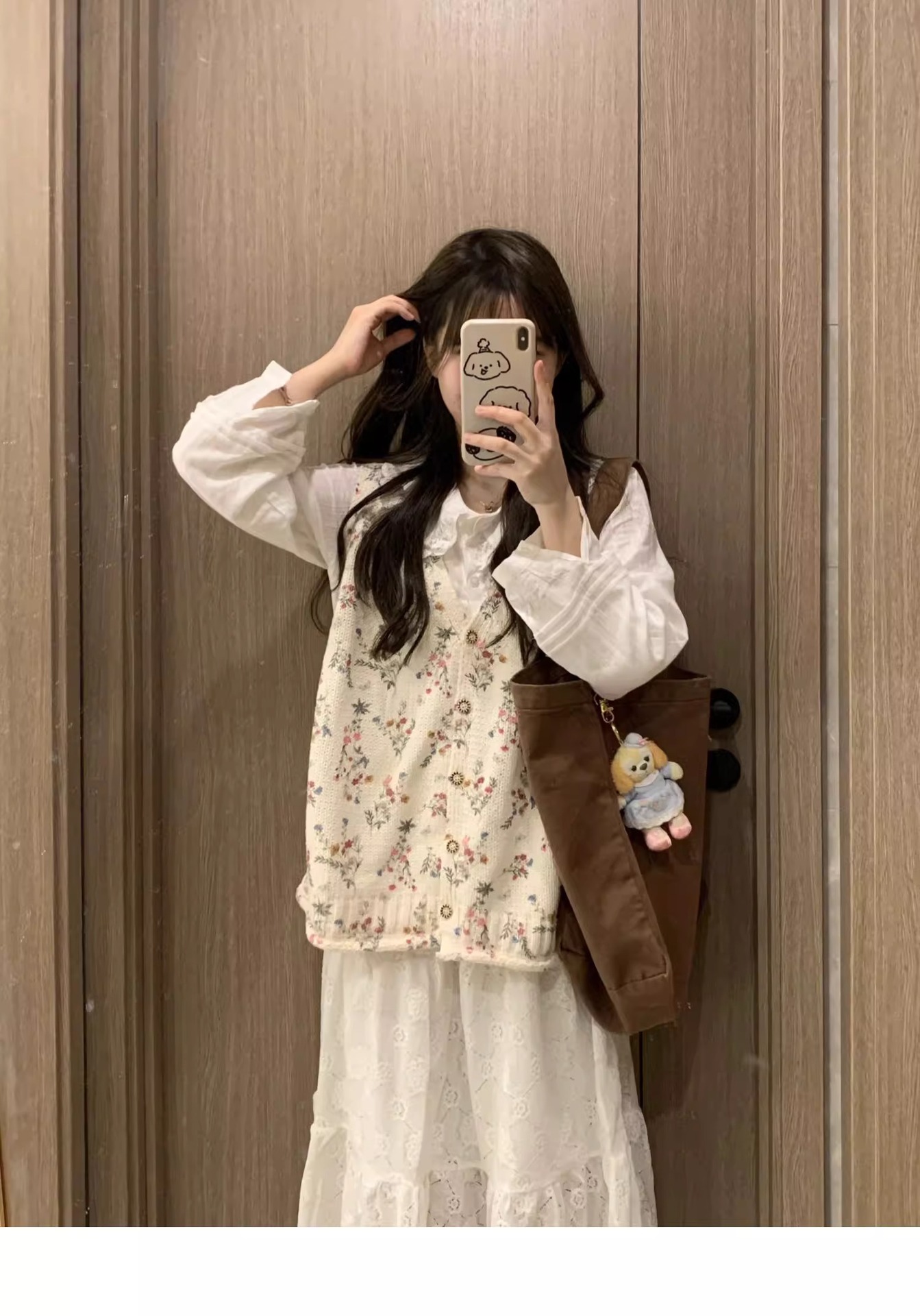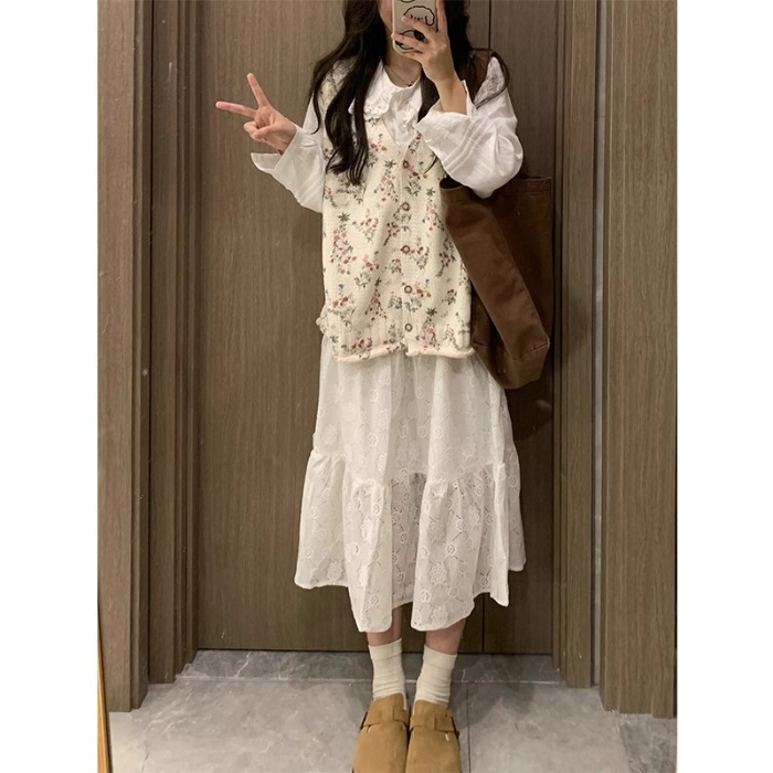 작은 사람들의 세트가있는 이른 봄 복장은 꽃 무늬 양복 조끼 셔츠 반 길이 스커트 투피스 세트 여성의 가을스토어 가기