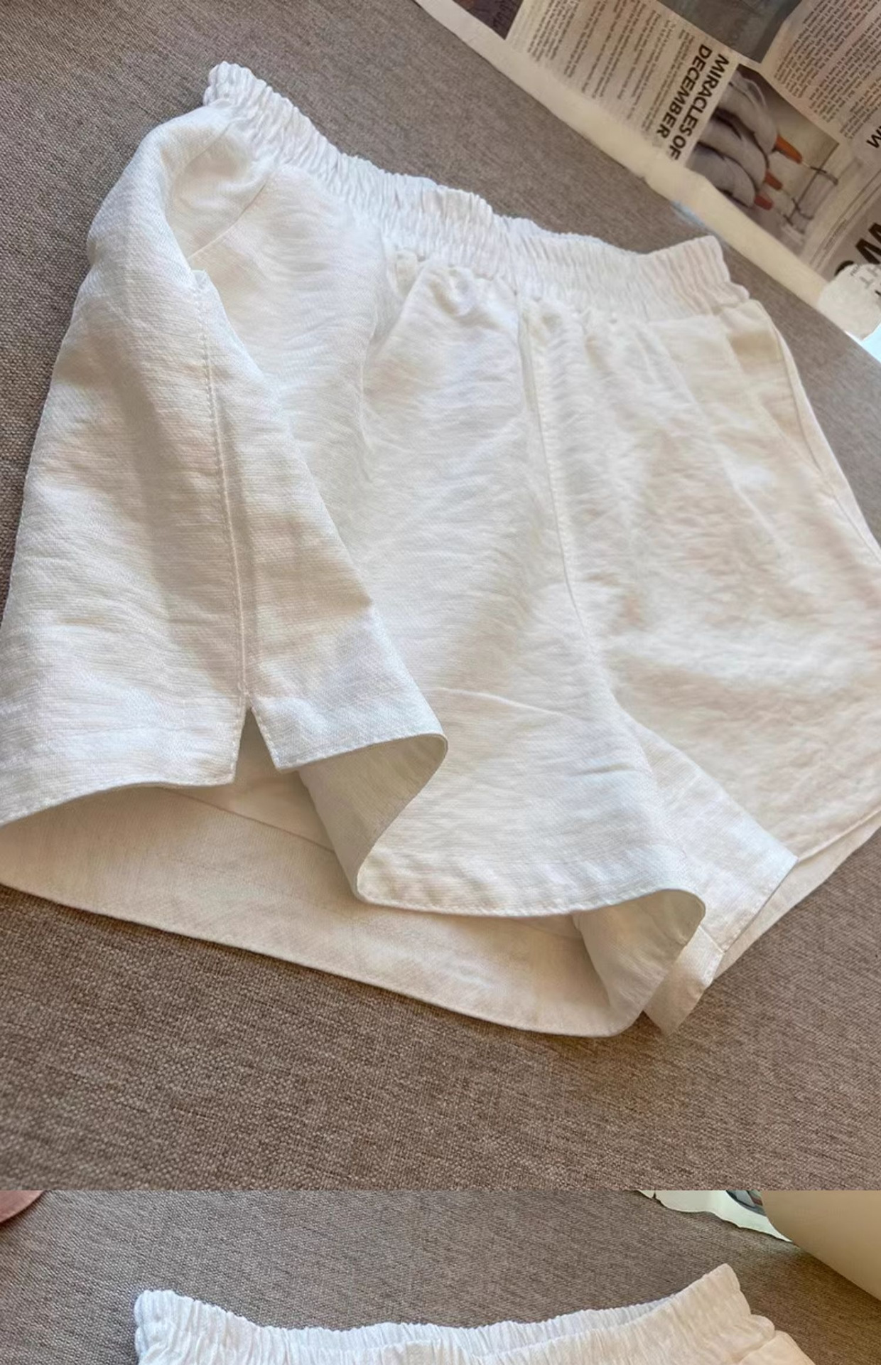 화이트 스플릿 통기성 반바지 여성 여름 얇은 느슨한 작은 올매치 A-워드 슬리밍 캐주얼 와이드 레그 바지