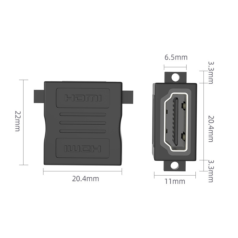 产品功能:适用于HDMI线对接,起到延长的作用,同时可以嵌入家庭装修接线面板,适用于HDMI线之间的对接,可将两条hdmi线连接起来 ,起延长作用。
