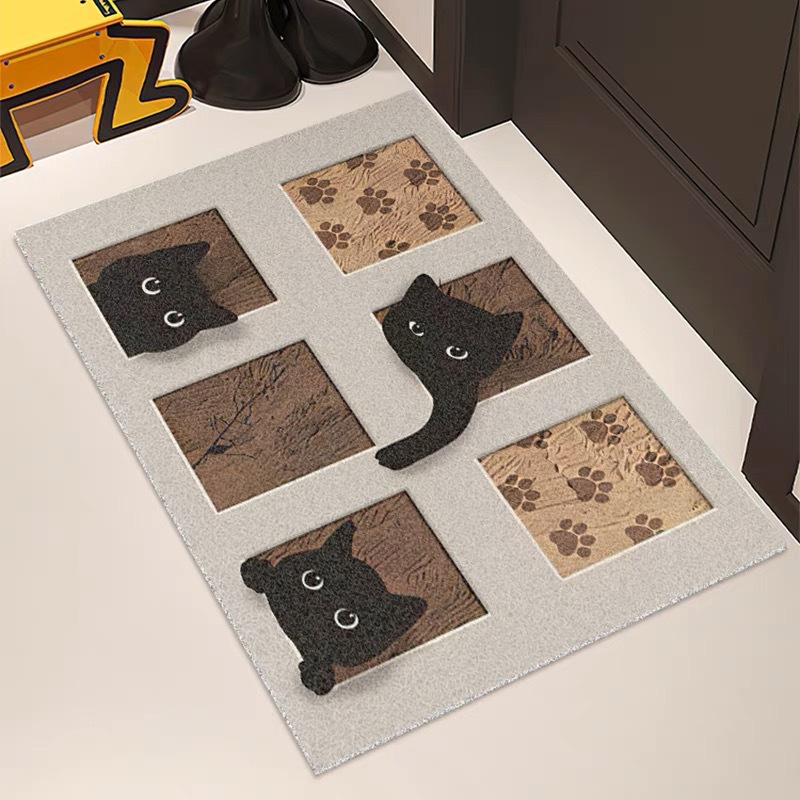 3 차원 귀여운 고양이 홈 입구 매트 문 PVC 모래 긁기 발 매트 복도 실크 링 미끄럼 방지 매트 절단 가능