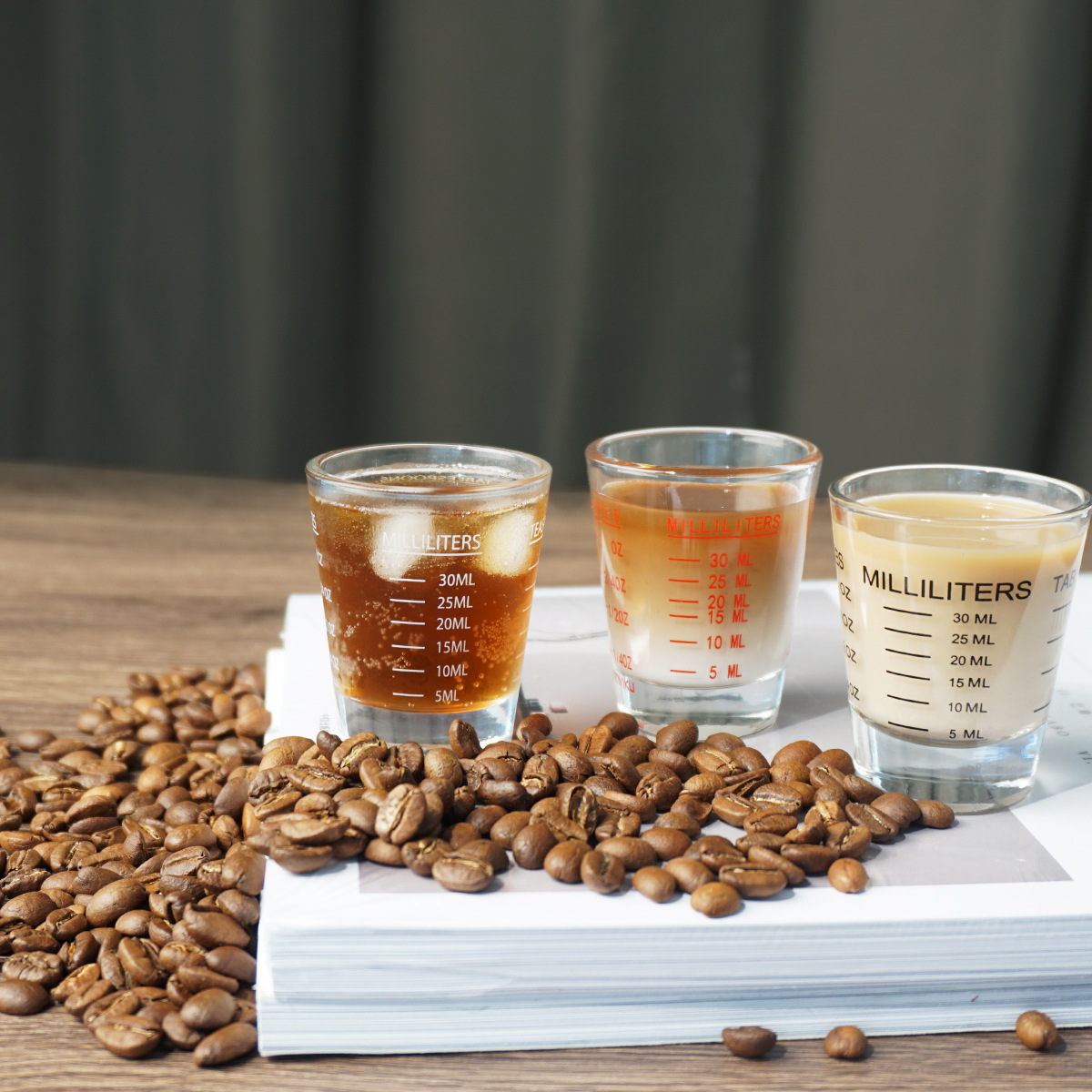 도매 유리 저울 온스 컵 30ml 작은 유리 측정 컵 더블 측정 커피 로스팅 온스 컵 측정