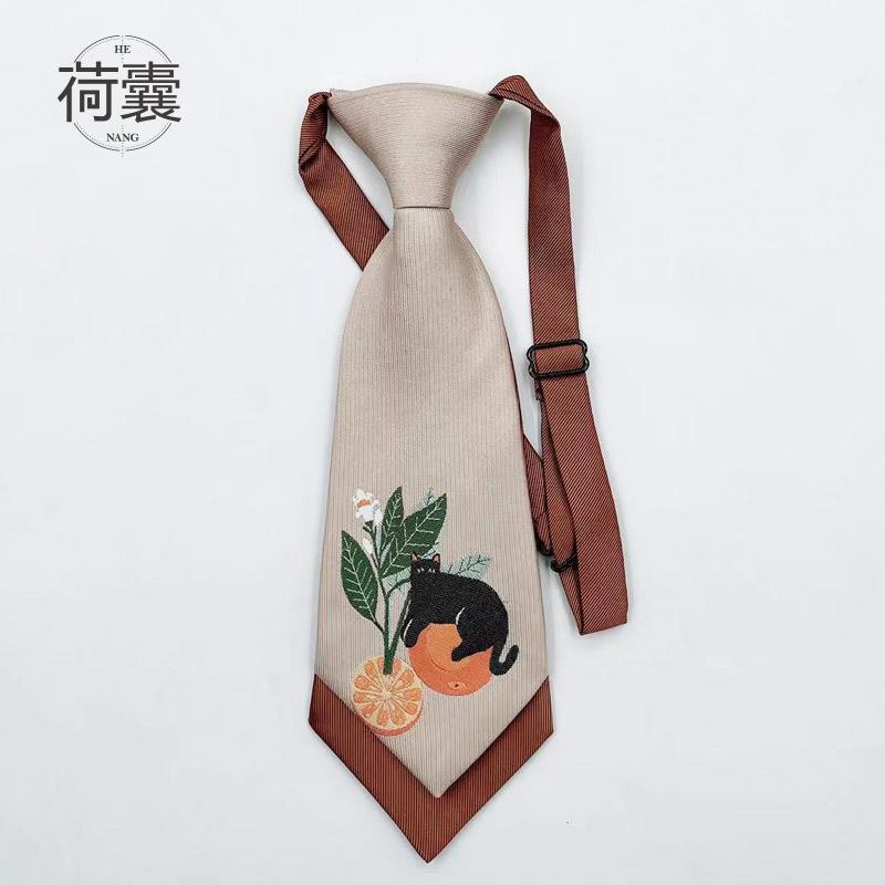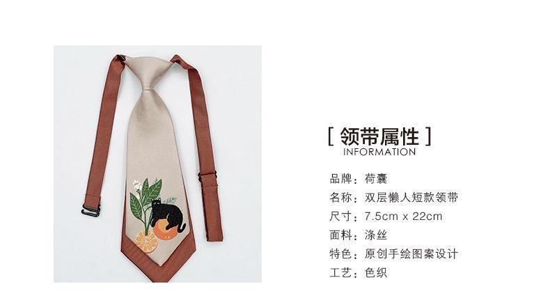 자수 더블 레이어 넥타이가없는 작은 넥타이 다크 브라운 달콤한 쿨 칼리지 소녀의 짧은 액세서리 오렌지 고양이스토어 가기