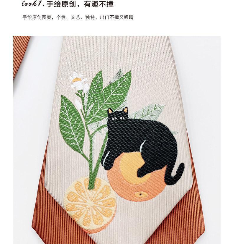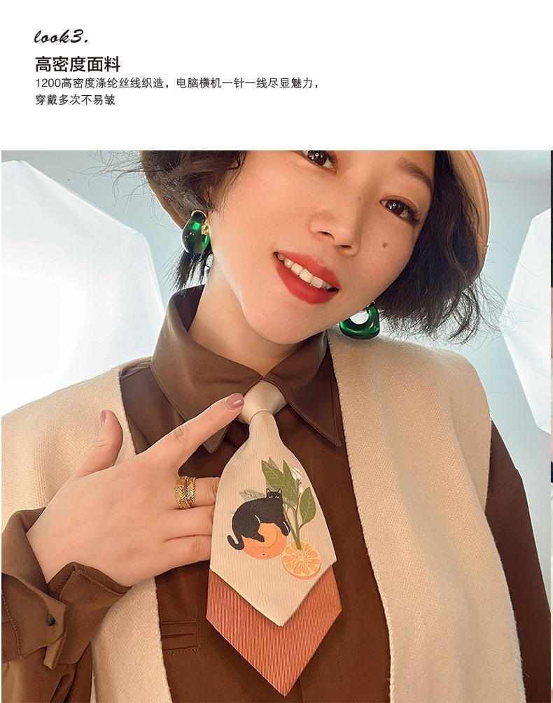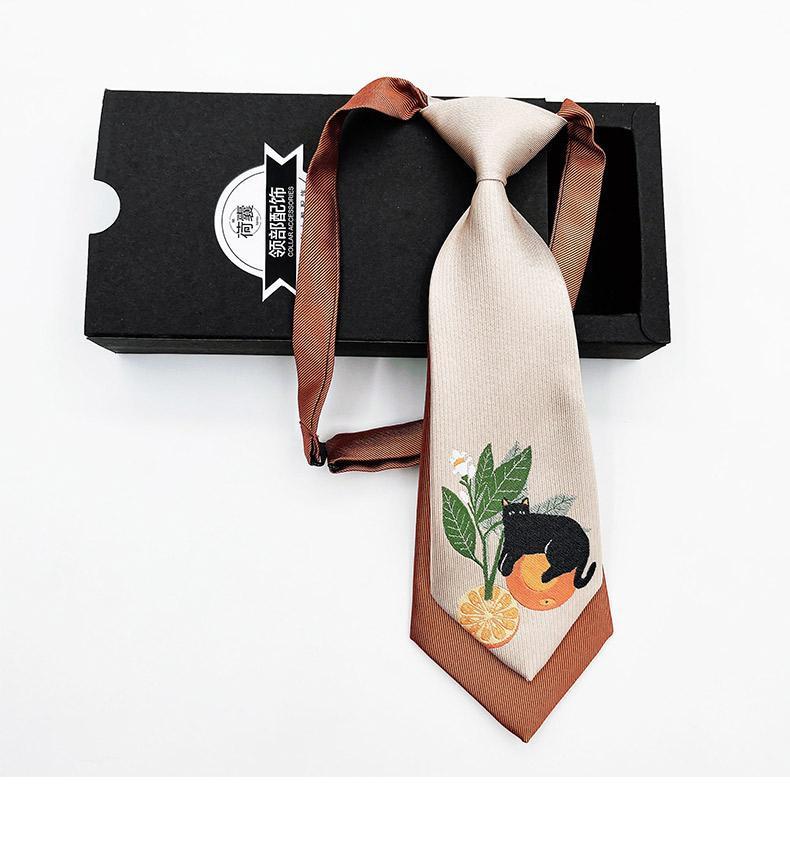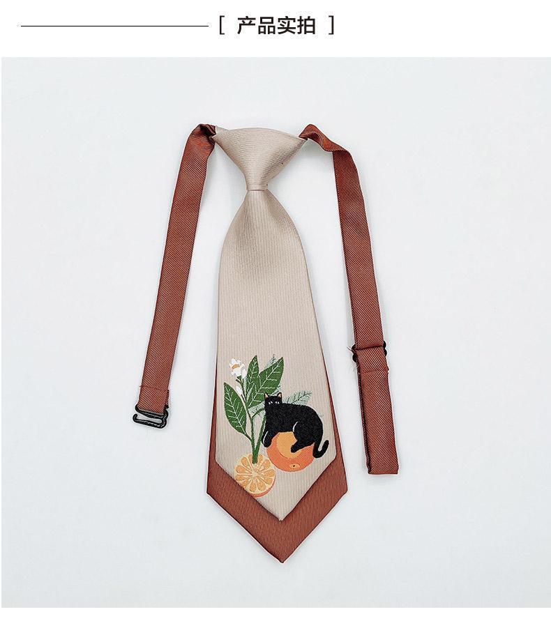 자수 더블 레이어 넥타이가없는 작은 넥타이 다크 브라운 달콤한 쿨 칼리지 소녀의 짧은 액세서리 오렌지 고양이