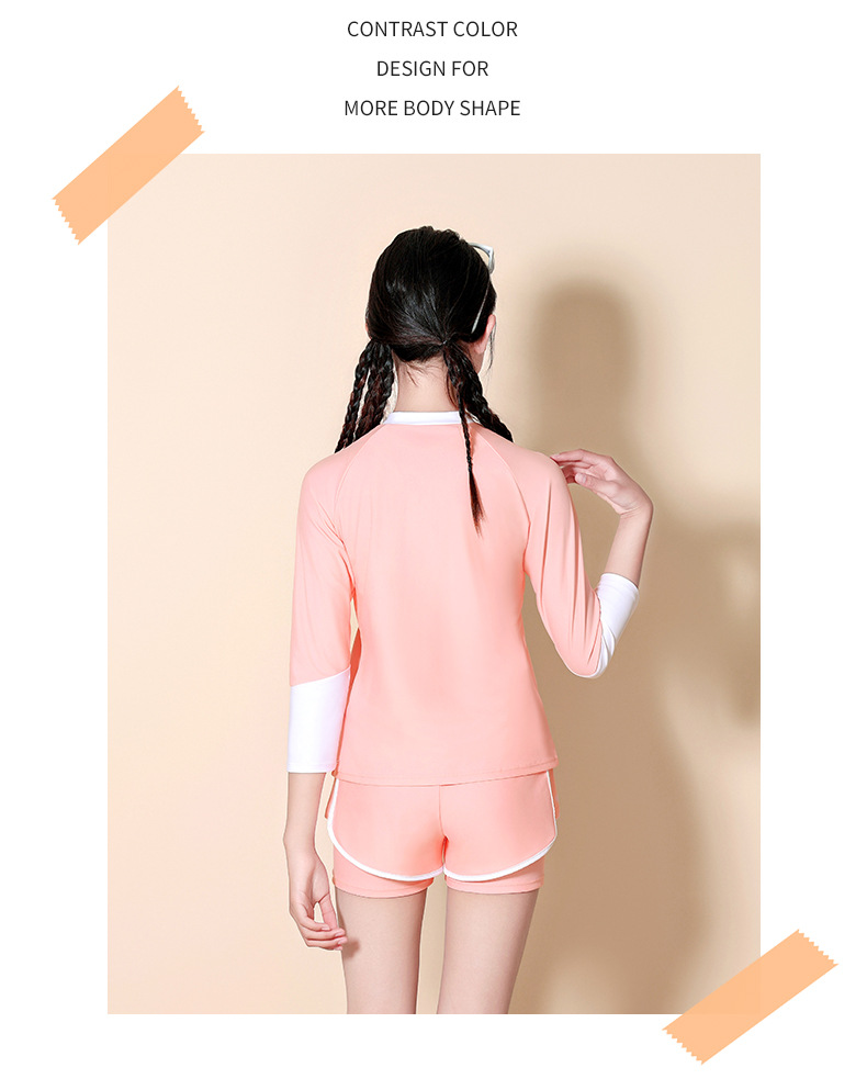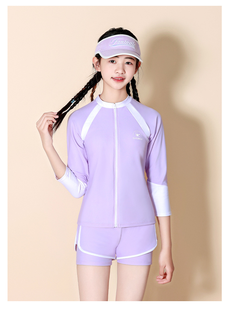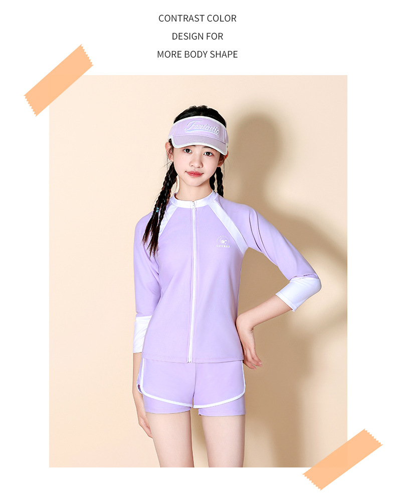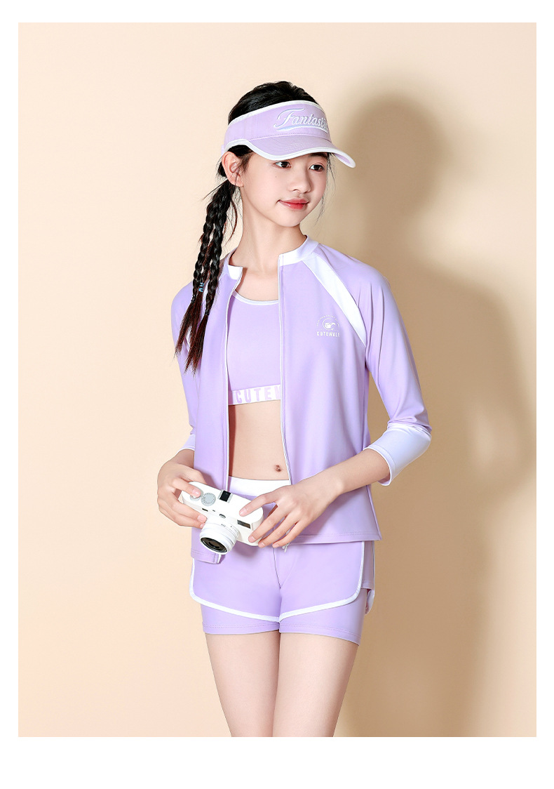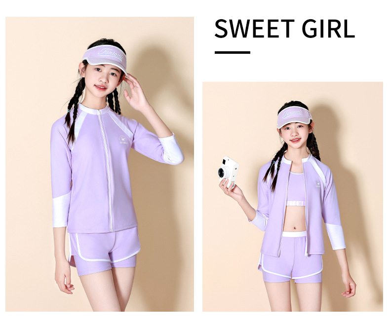 어린이 수영복 소녀 큰 어린이 분할 태양 보호 3 피스 2024 새로운 스타일 소녀 전문 교육 온천 수영복스토어 가기