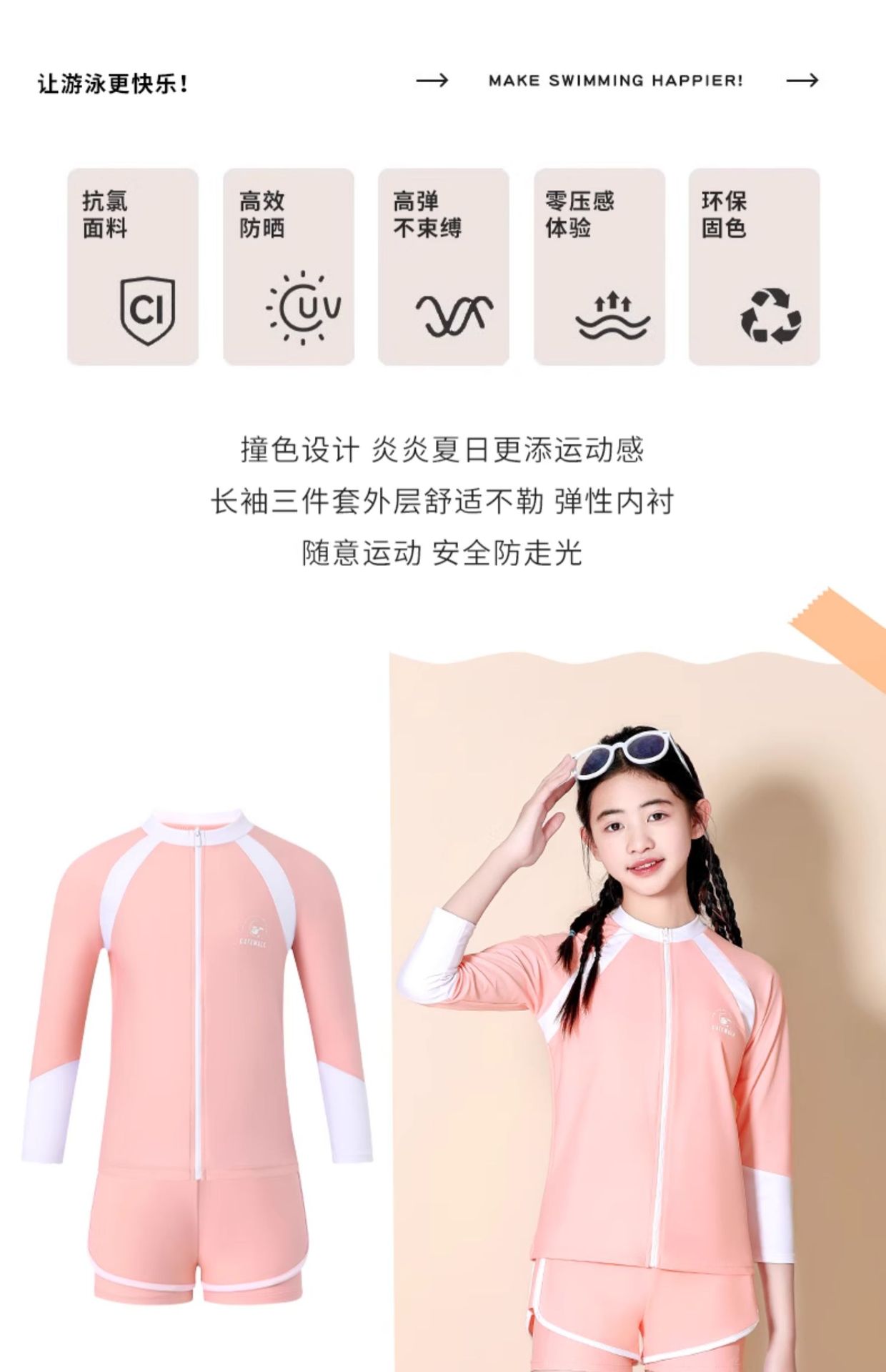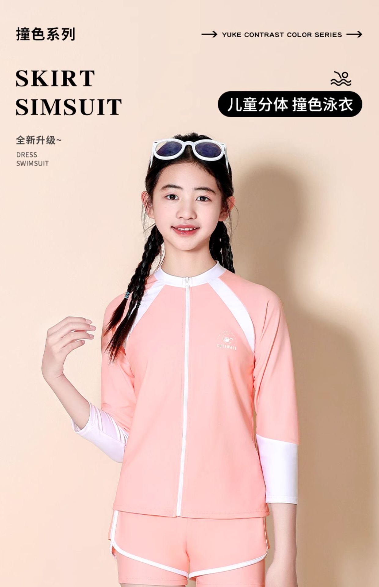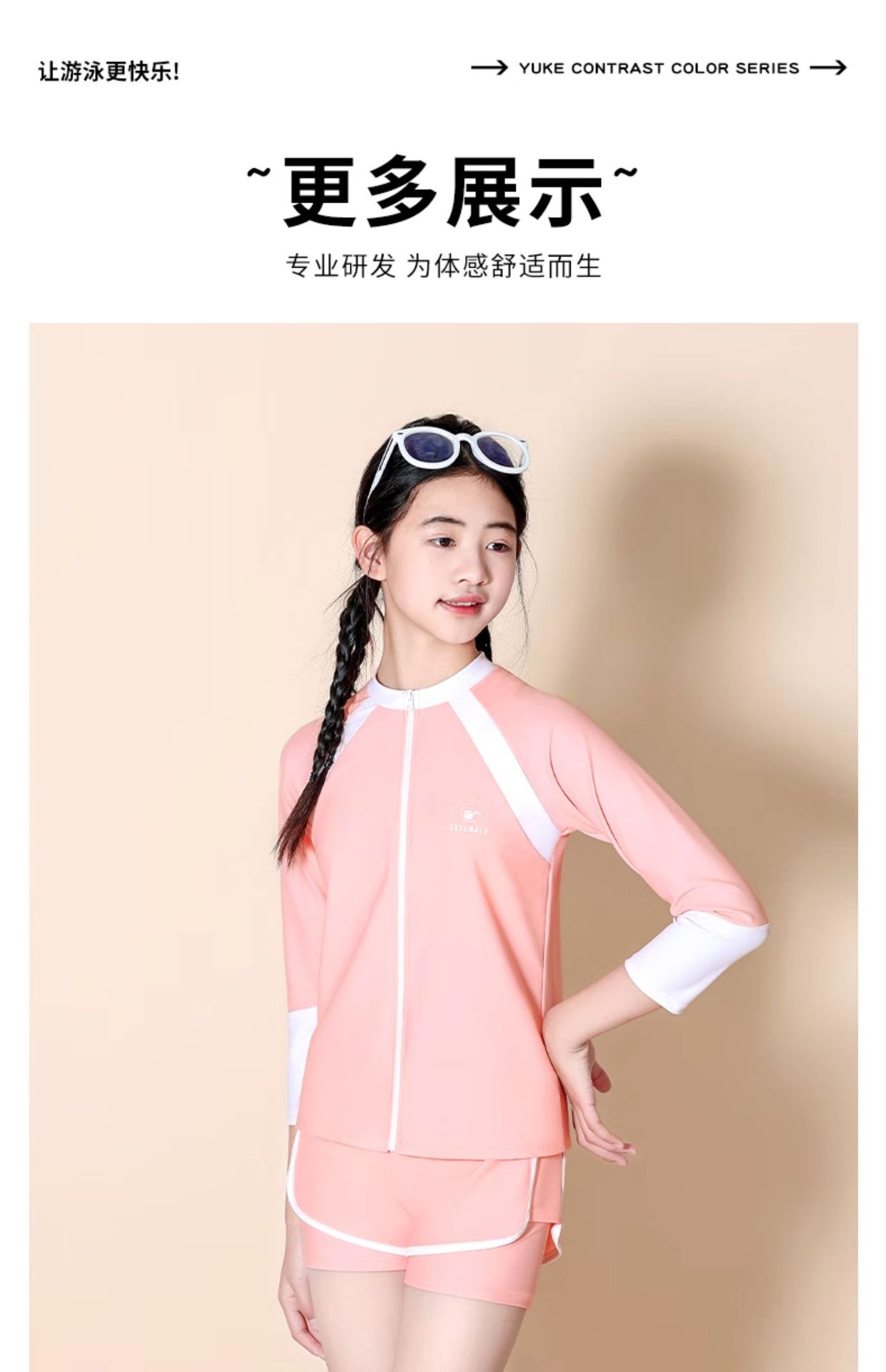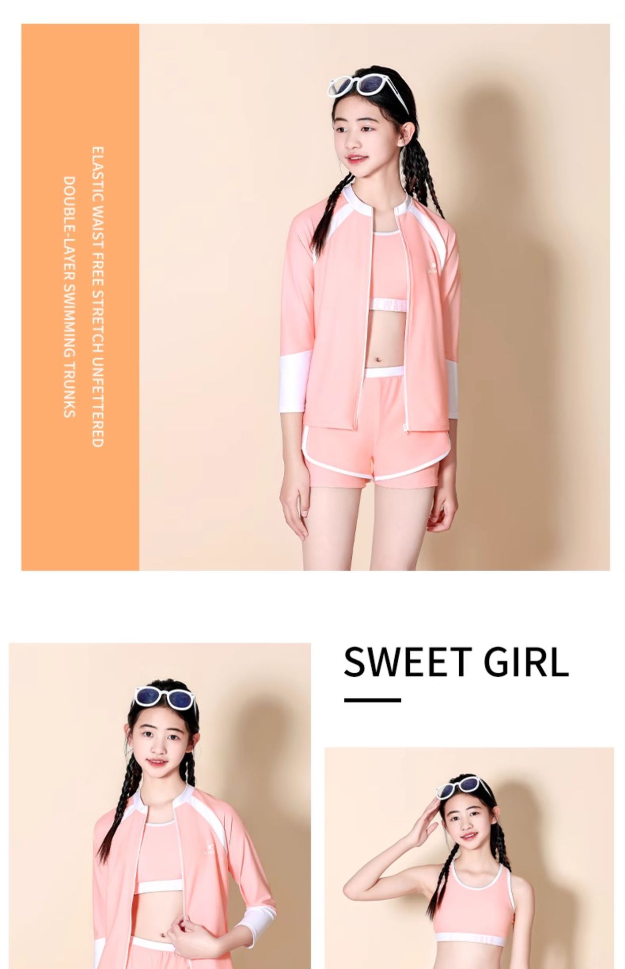 어린이 수영복 소녀 큰 어린이 분할 태양 보호 3 피스 2024 새로운 스타일 소녀 전문 교육 온천 수영복스토어 가기