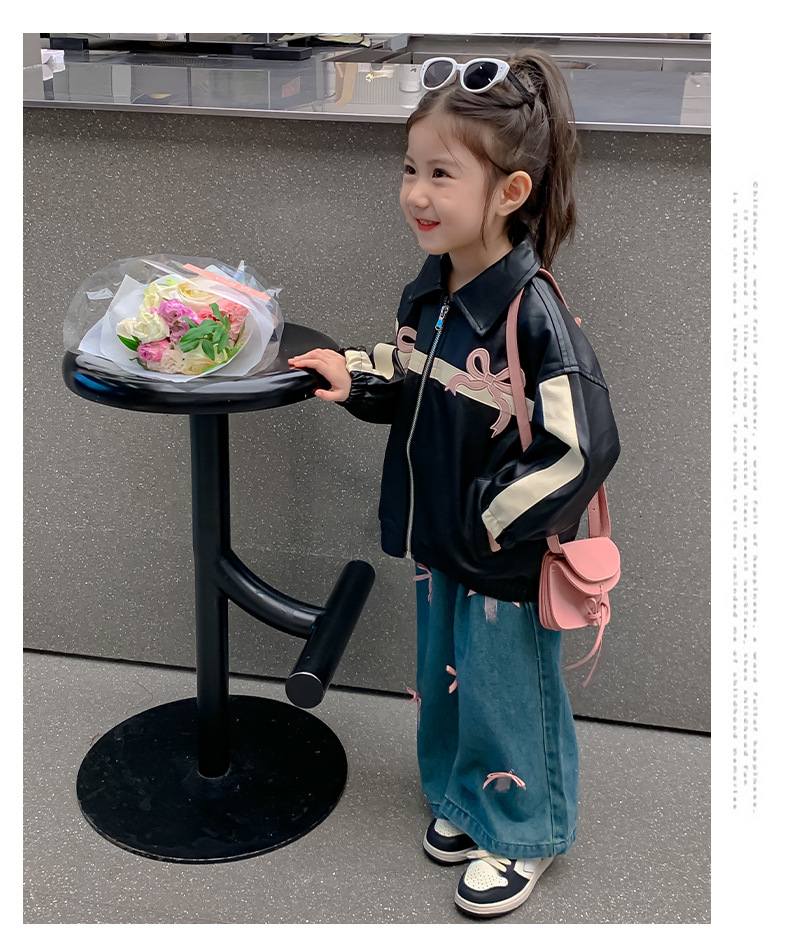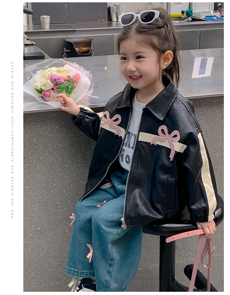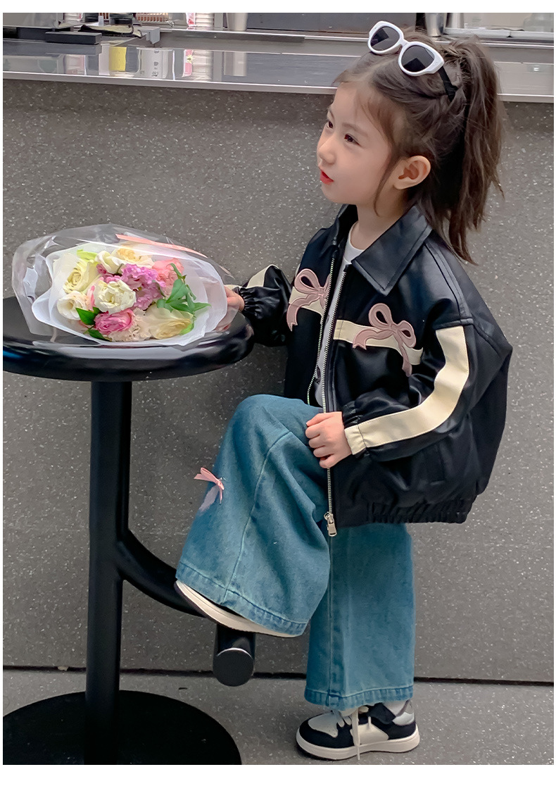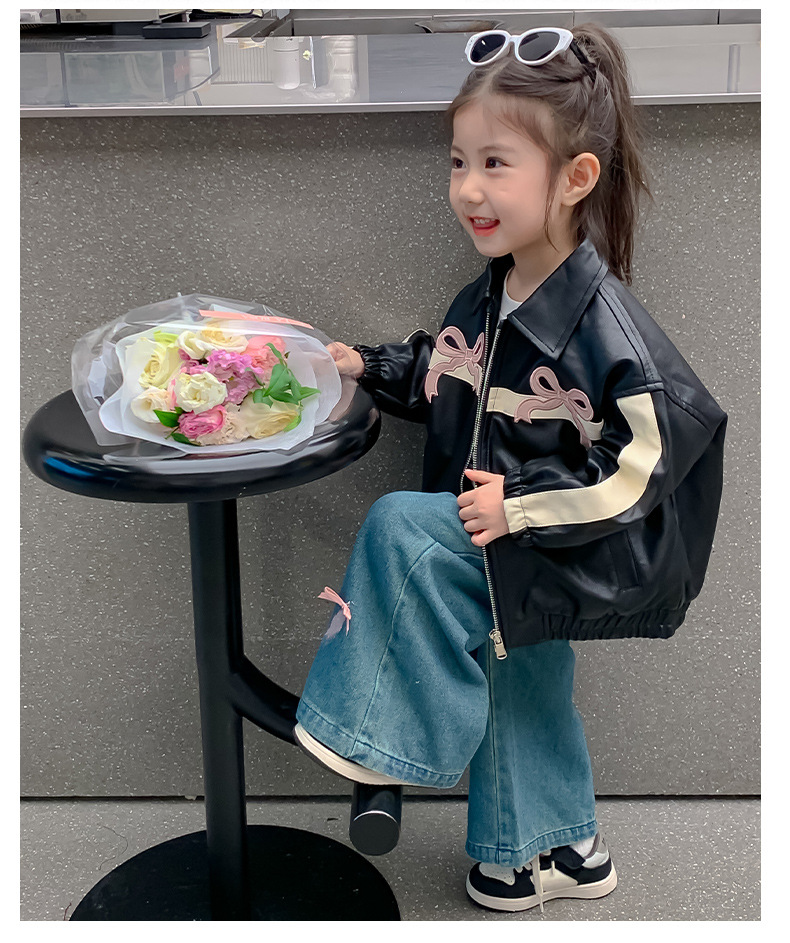 여아 코트 봄 가을 스타일 2025 신상 세련된 아동 봄옷 가죽 자켓 중소형 아동용 봄 한국 스타일 상의 트렌디스토어 가기