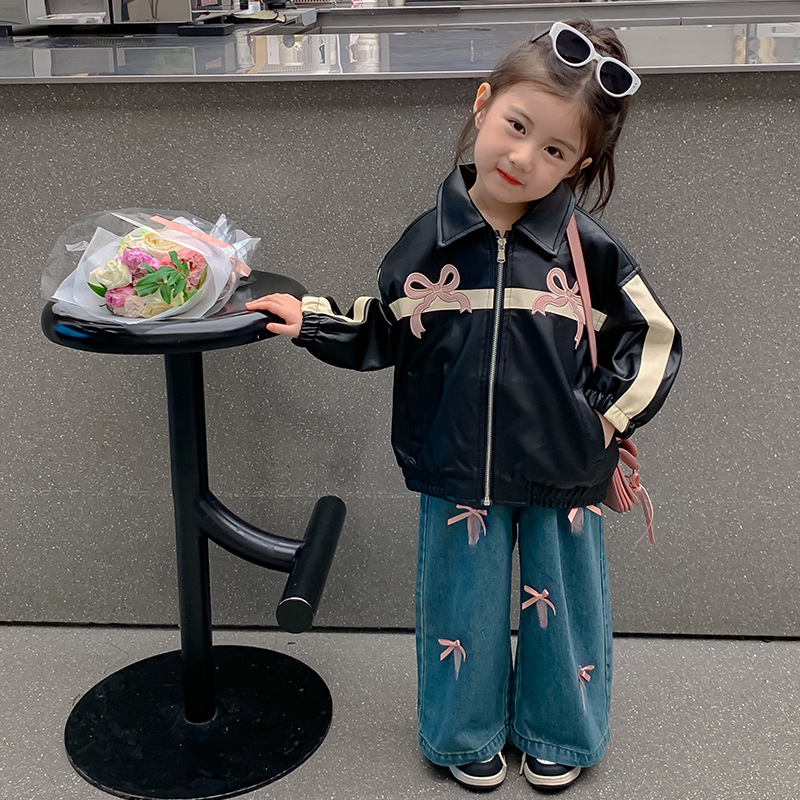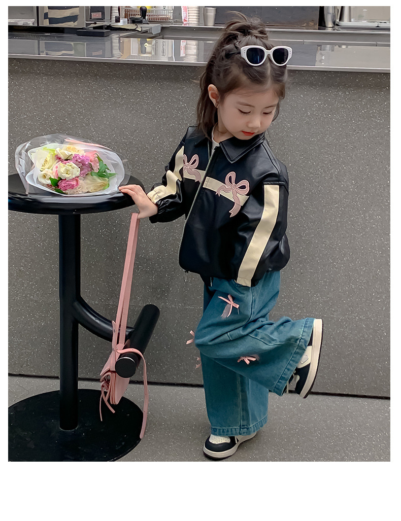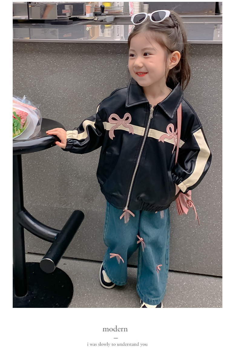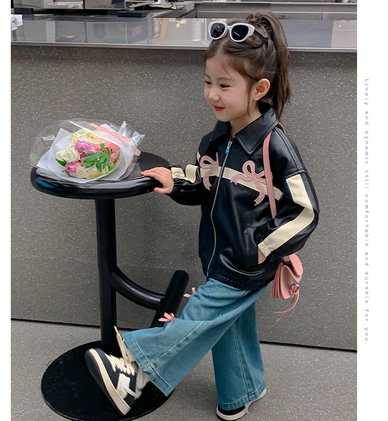 여아 코트 봄 가을 스타일 2025 신상 세련된 아동 봄옷 가죽 자켓 중소형 아동용 봄 한국 스타일 상의 트렌디스토어 가기