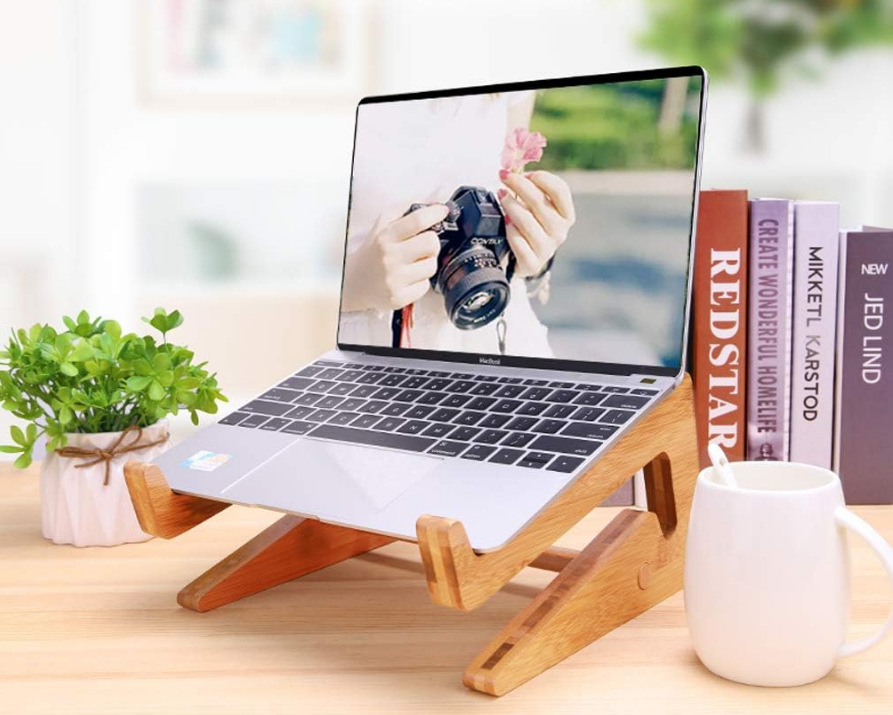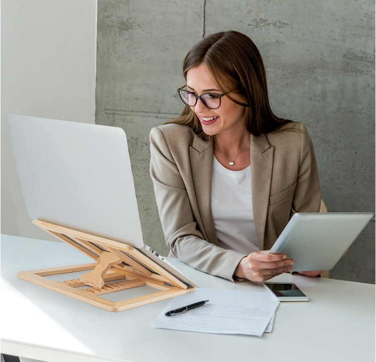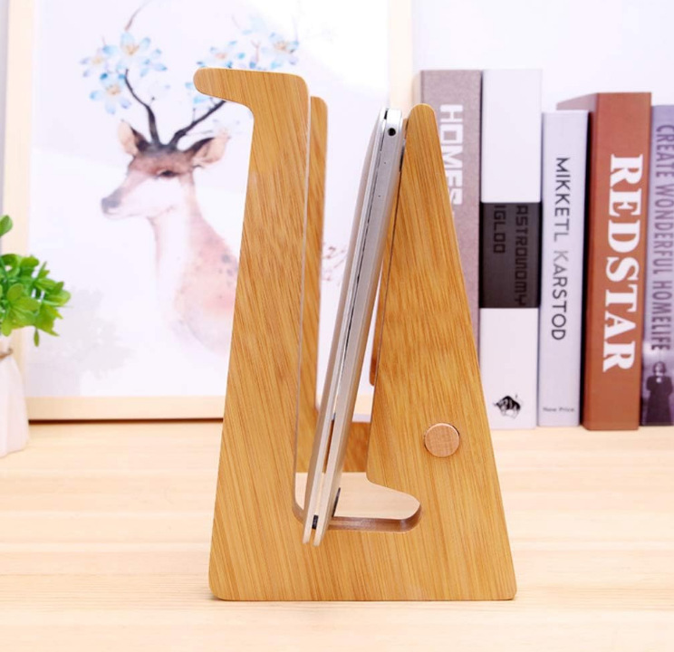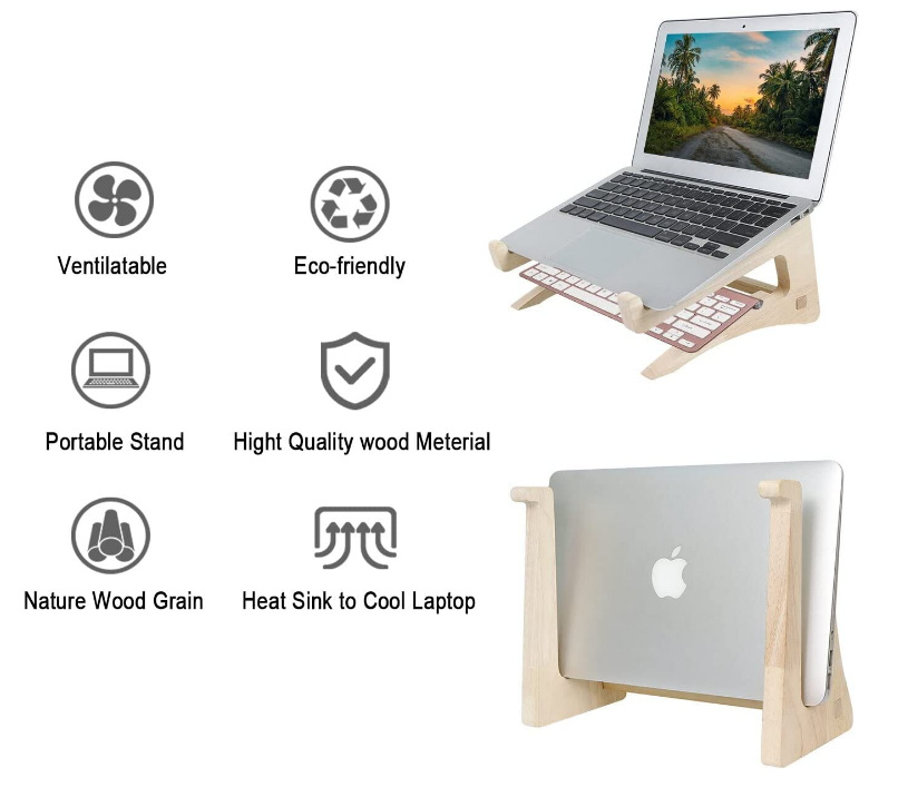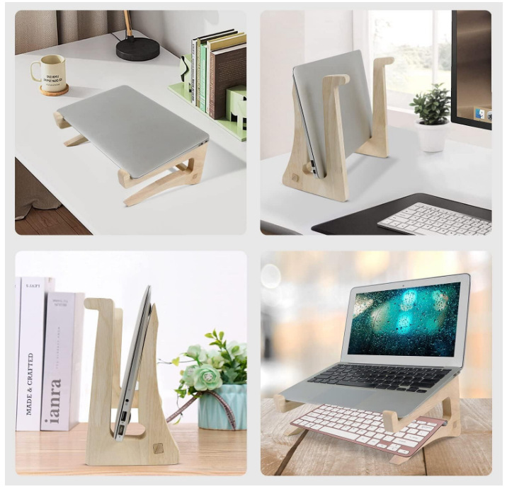 나무 노트북 스탠드 접이식 휴대용 스탠드 데스크탑 컴퓨터 높은 랙 조정 가능한 책꽂이