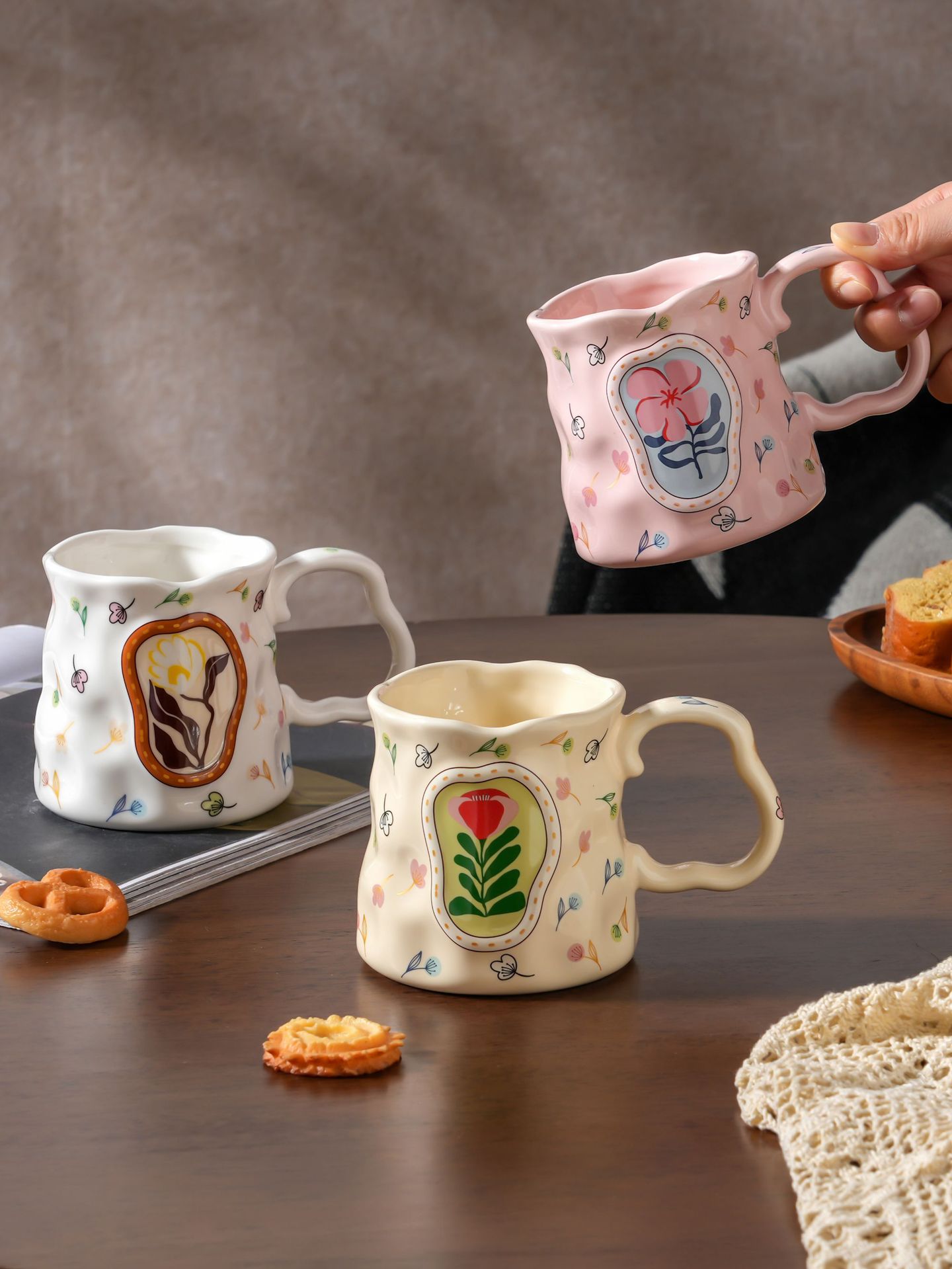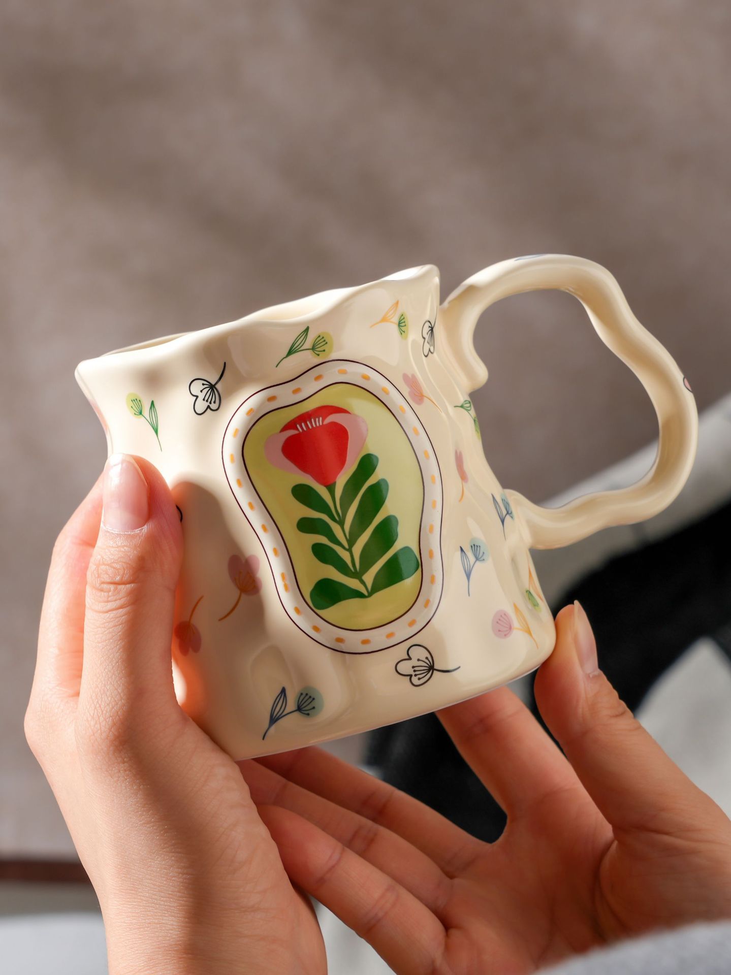 판타지 꽃 손으로 반죽 세라믹 머그잔 높은 색 가치 물 컵 디자인 센스 선물 조식 컵 커피 컵스토어 가기