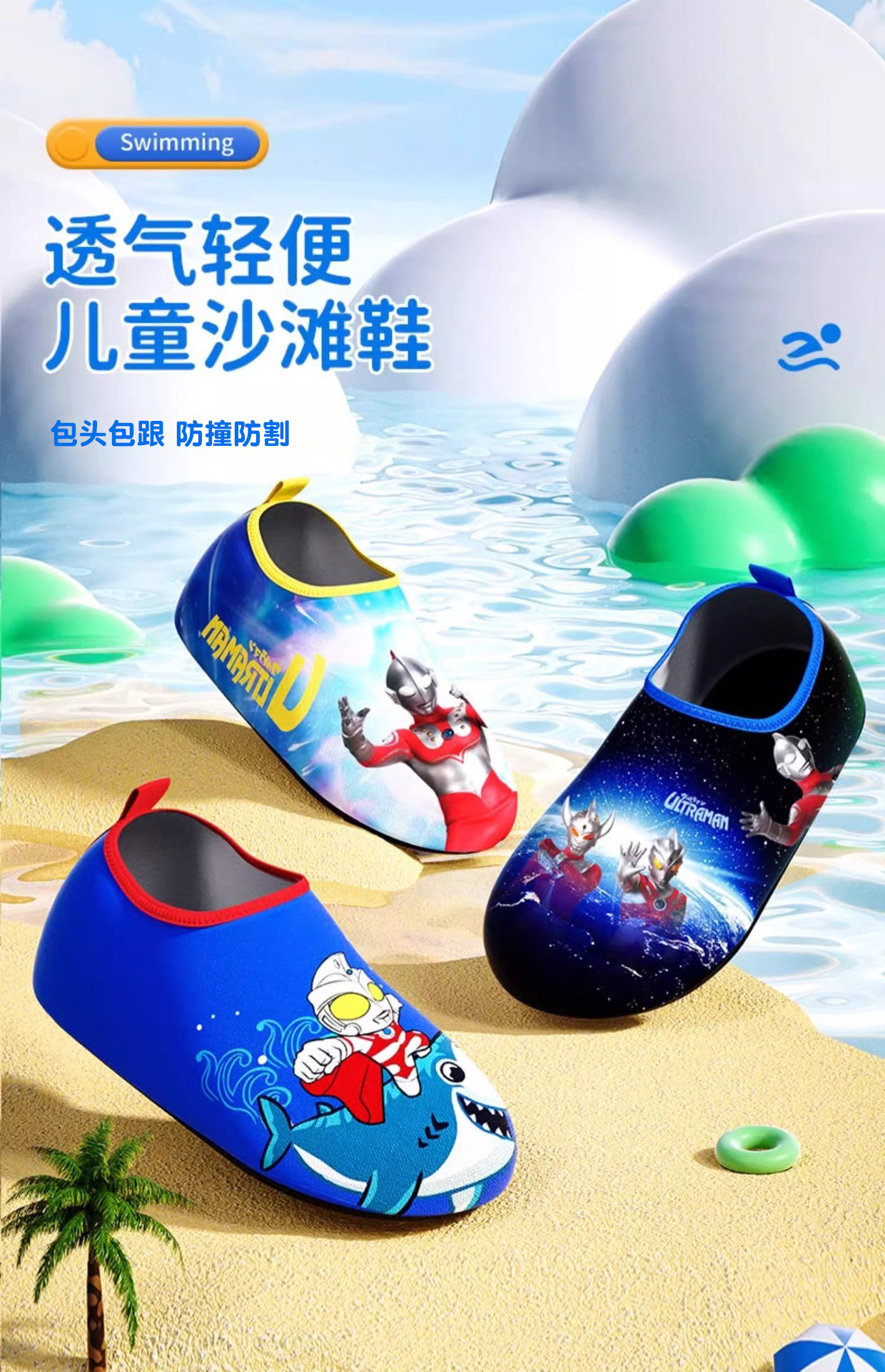 클래식 울트라맨 어린이 해변 신발 새로운 스타일의 소년 소녀 수영 피부 친화적인 신발과 양말, 강 트레킹 샌들