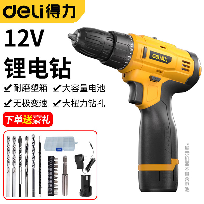 델리 핸드 전기 드릴 전기 스크루 드라이버 브러시리스 충전식 드릴 가정용 12V 리튬 전기 드릴 충전식 무선 건설