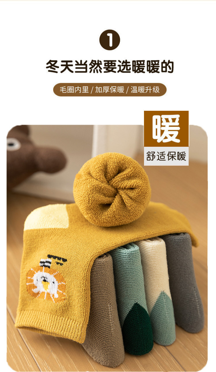 국경 간 따뜻한 테리 양말 기모 아기 바닥 양말 가을과 겨울 어린이 양말은 스타킹 소년 아기 양말