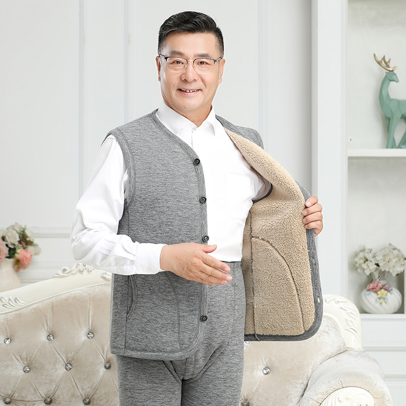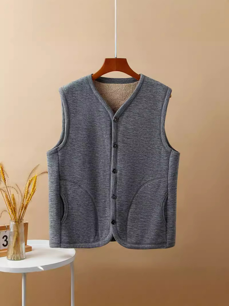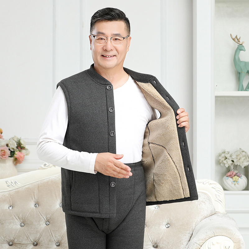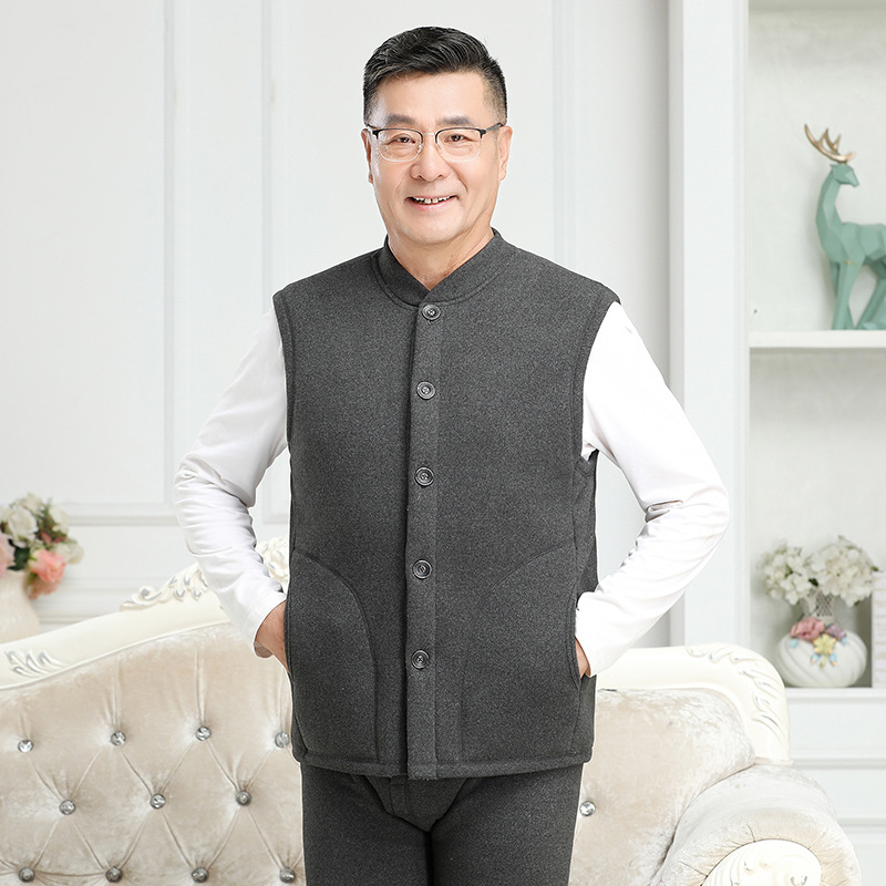 신제품 남성 조끼 아빠복 중장년 보온 조끼 민소매 플리스 안감 두꺼운 할아버지 큰 사이즈 노인 보온복