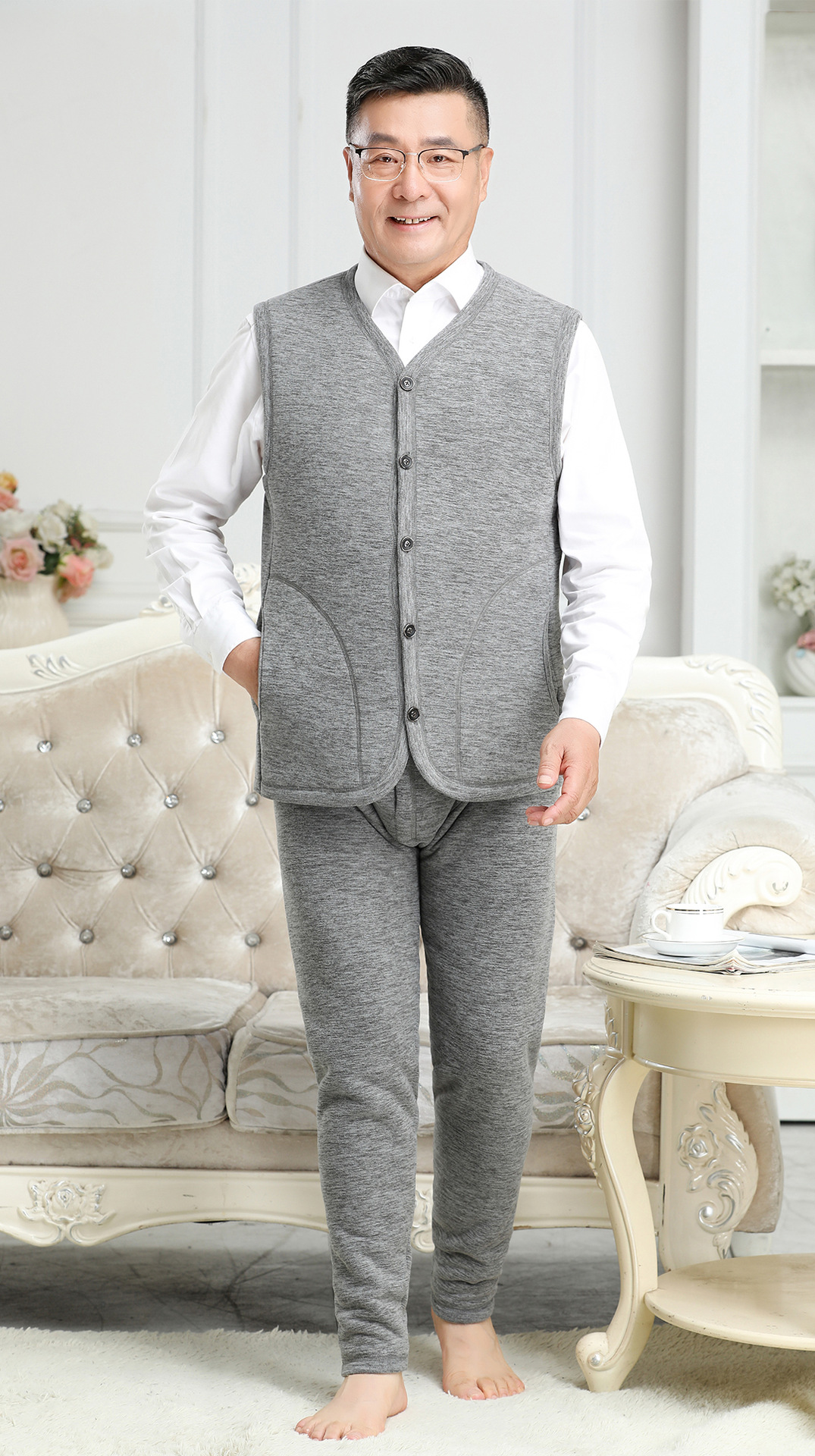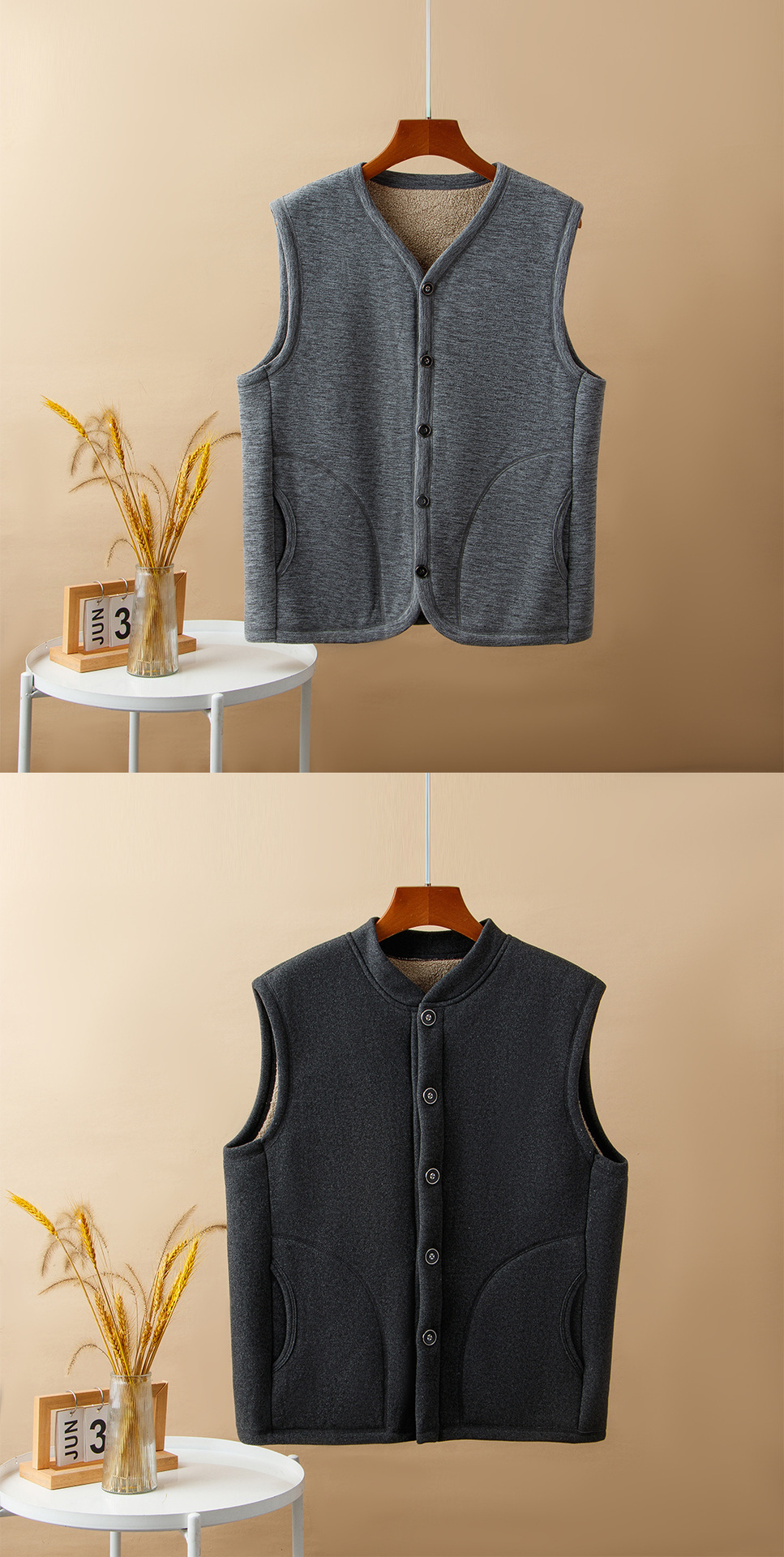 신제품 남성 조끼 아빠복 중장년 보온 조끼 민소매 플리스 안감 두꺼운 할아버지 큰 사이즈 노인 보온복스토어 가기