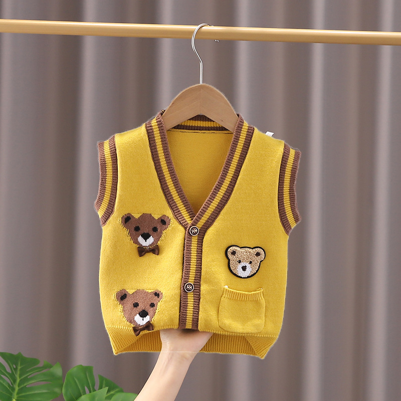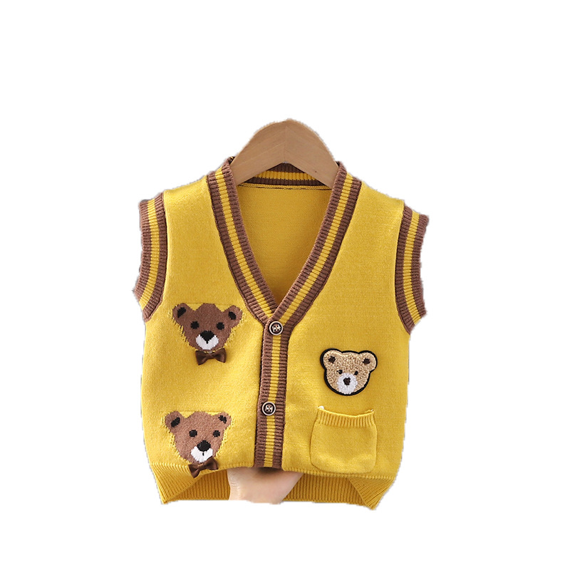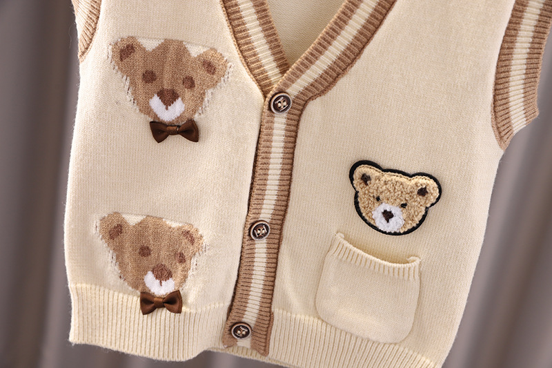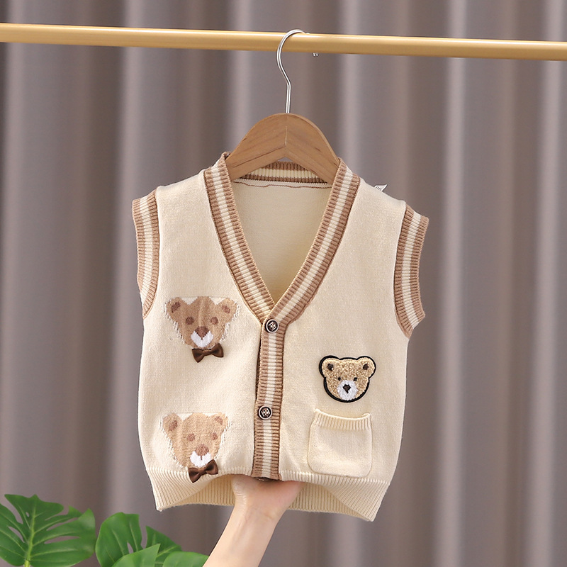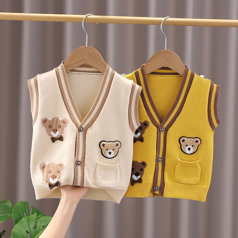 어린이 스웨터 조끼 소년 카디건 외부 조끼 새로운 아기 만화 곰 니트 숄더 웨이스트 코트