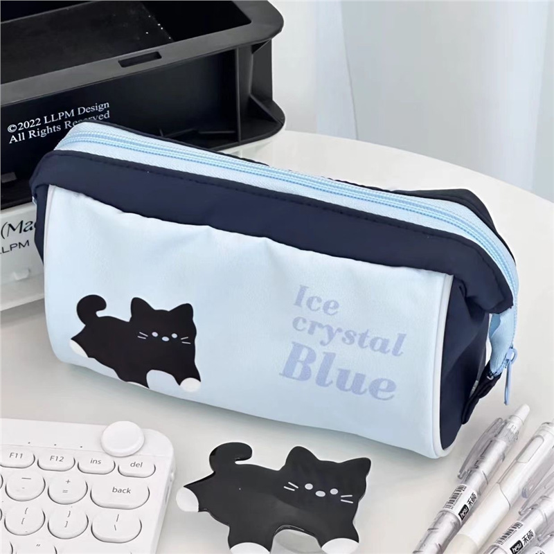 • 그레이 팻 지 고양이 더블 지퍼 필통