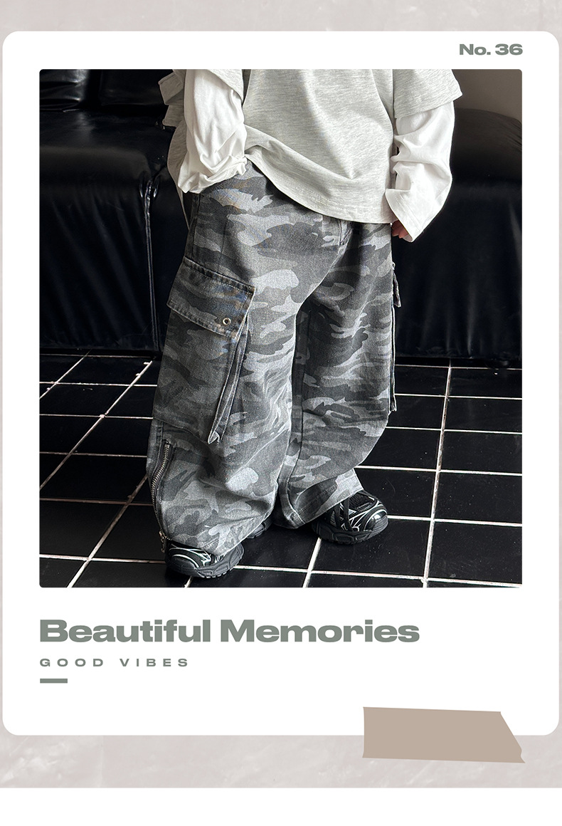 소년 느슨한 작업복 2025 봄 새로운 스타일 소년의 멋진 위장 바지 중소 어린이 봄, 가을 청바지 유행스토어 가기