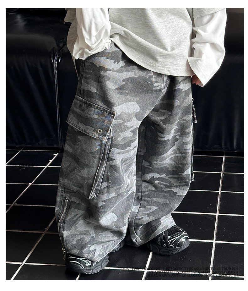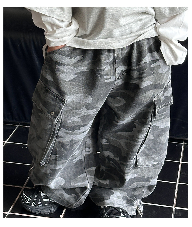 소년 느슨한 작업복 2025 봄 새로운 스타일 소년의 멋진 위장 바지 중소 어린이 봄, 가을 청바지 유행
