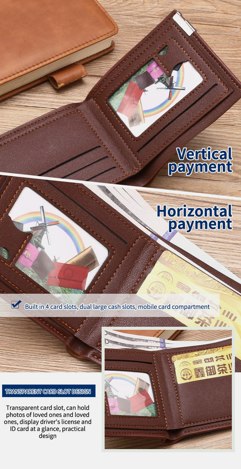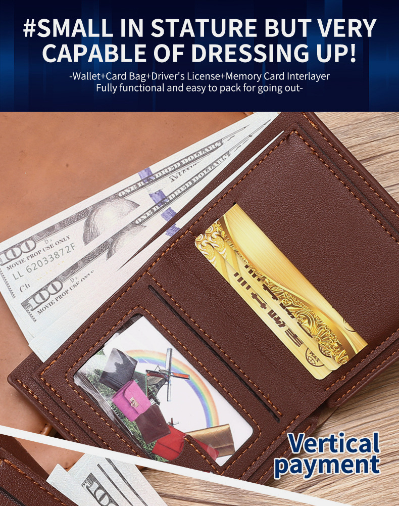 국경 새 지갑 남자 짧은 한국 스타일 청소년 아이언 엣지 지갑 수평 및 수직 학생 유행 다기능 카드 가방