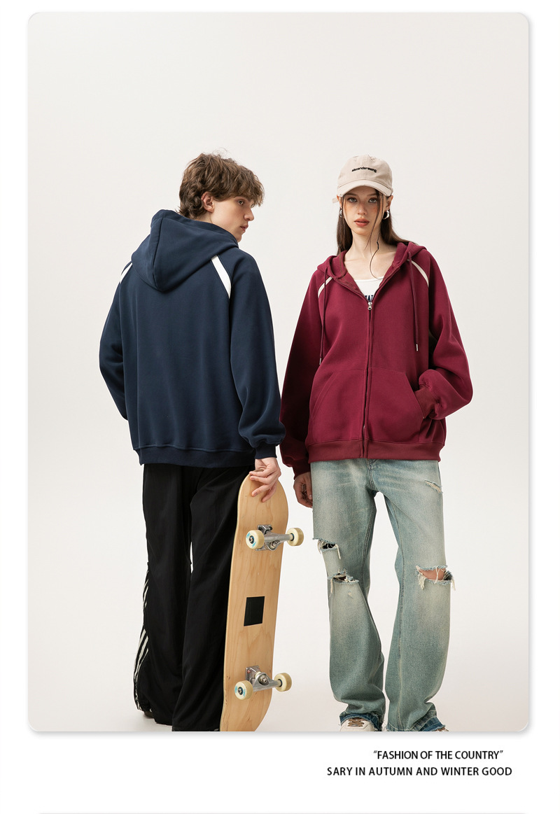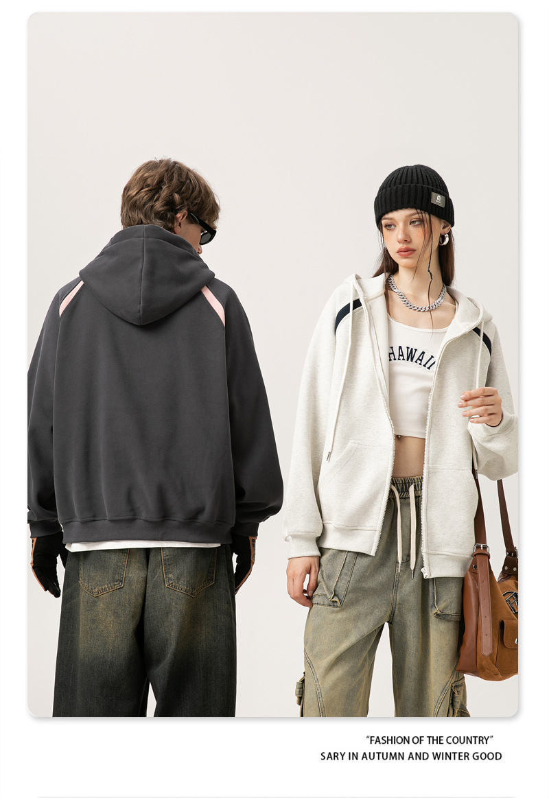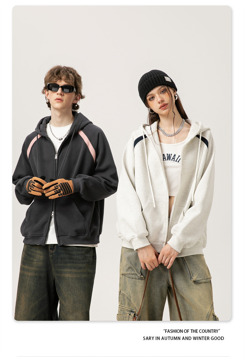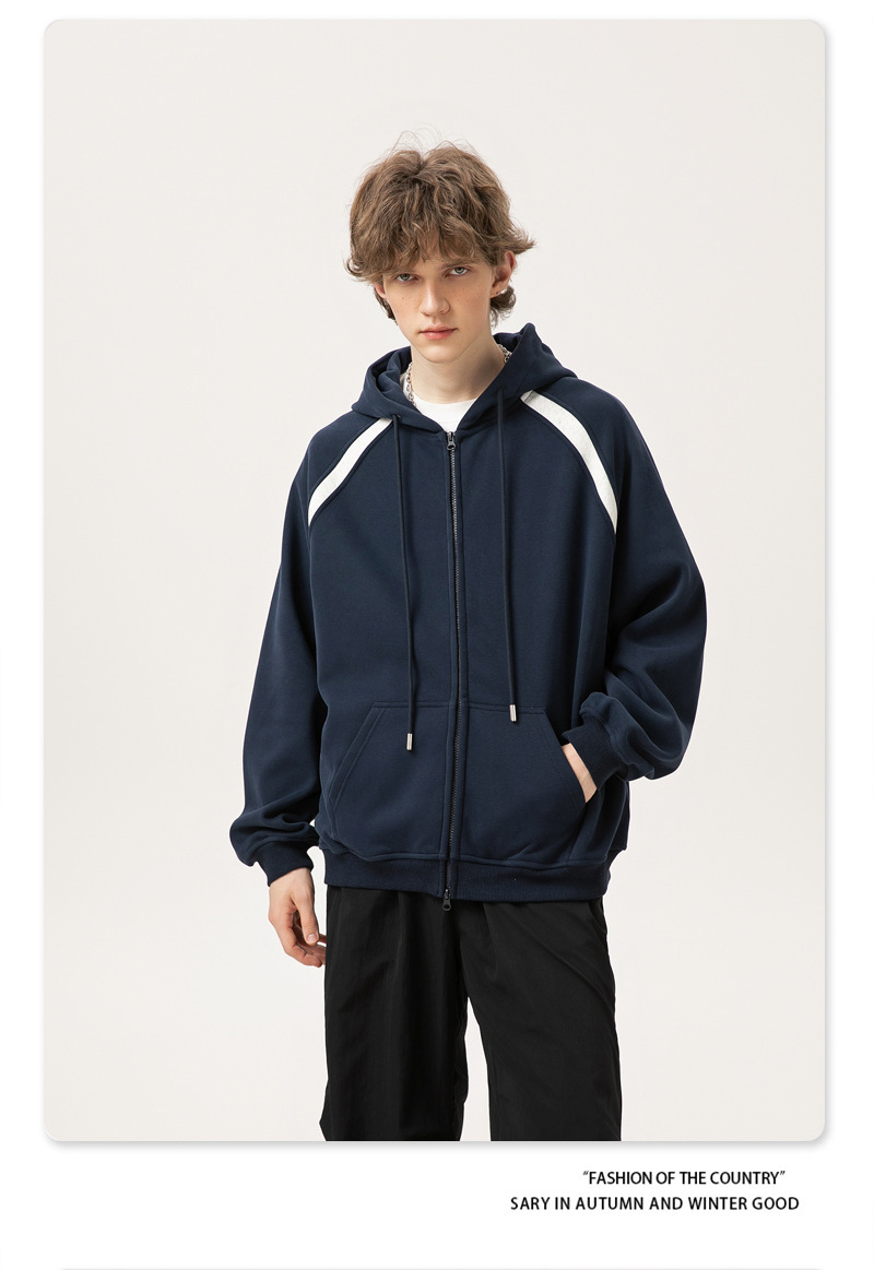 남자 가을과 겨울 미국 레트로 라글란 슬리브 후드 카디건 스웨터 남성용 트렌디 브랜드 단순 루즈 캐주얼 커플 재킷스토어 가기
