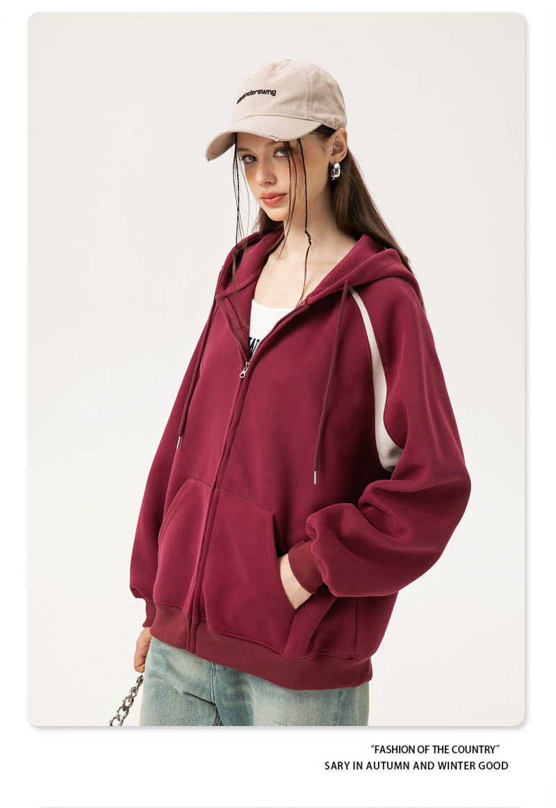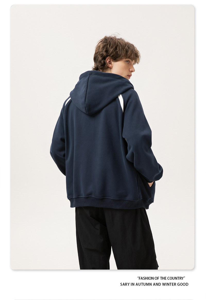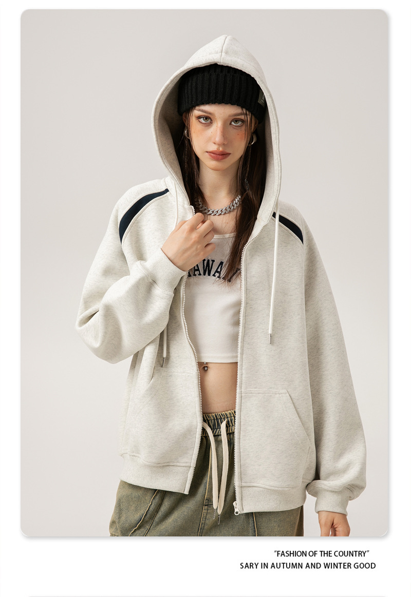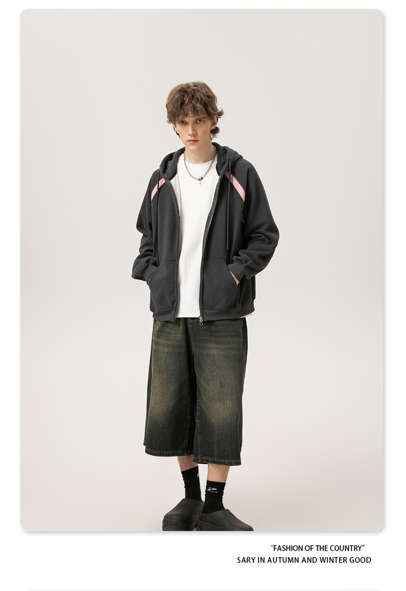 남자 가을과 겨울 미국 레트로 라글란 슬리브 후드 카디건 스웨터 남성용 트렌디 브랜드 단순 루즈 캐주얼 커플 재킷스토어 가기
