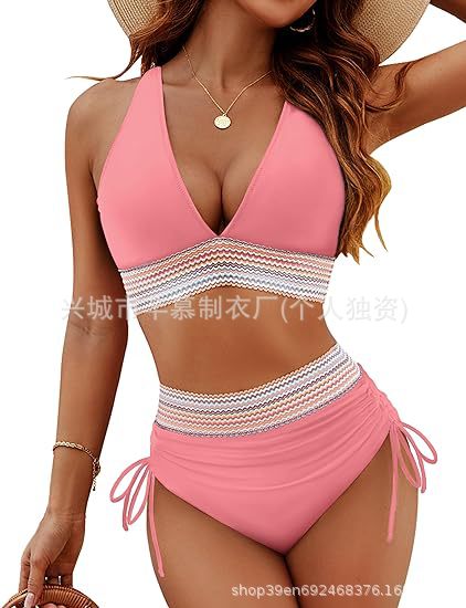 유럽과 미국의 대외 무역 새로운 수영복 여성 분할 섹시한 비키니 높은 허리 배 목을 매달려있는 아마존 폭발스토어 가기