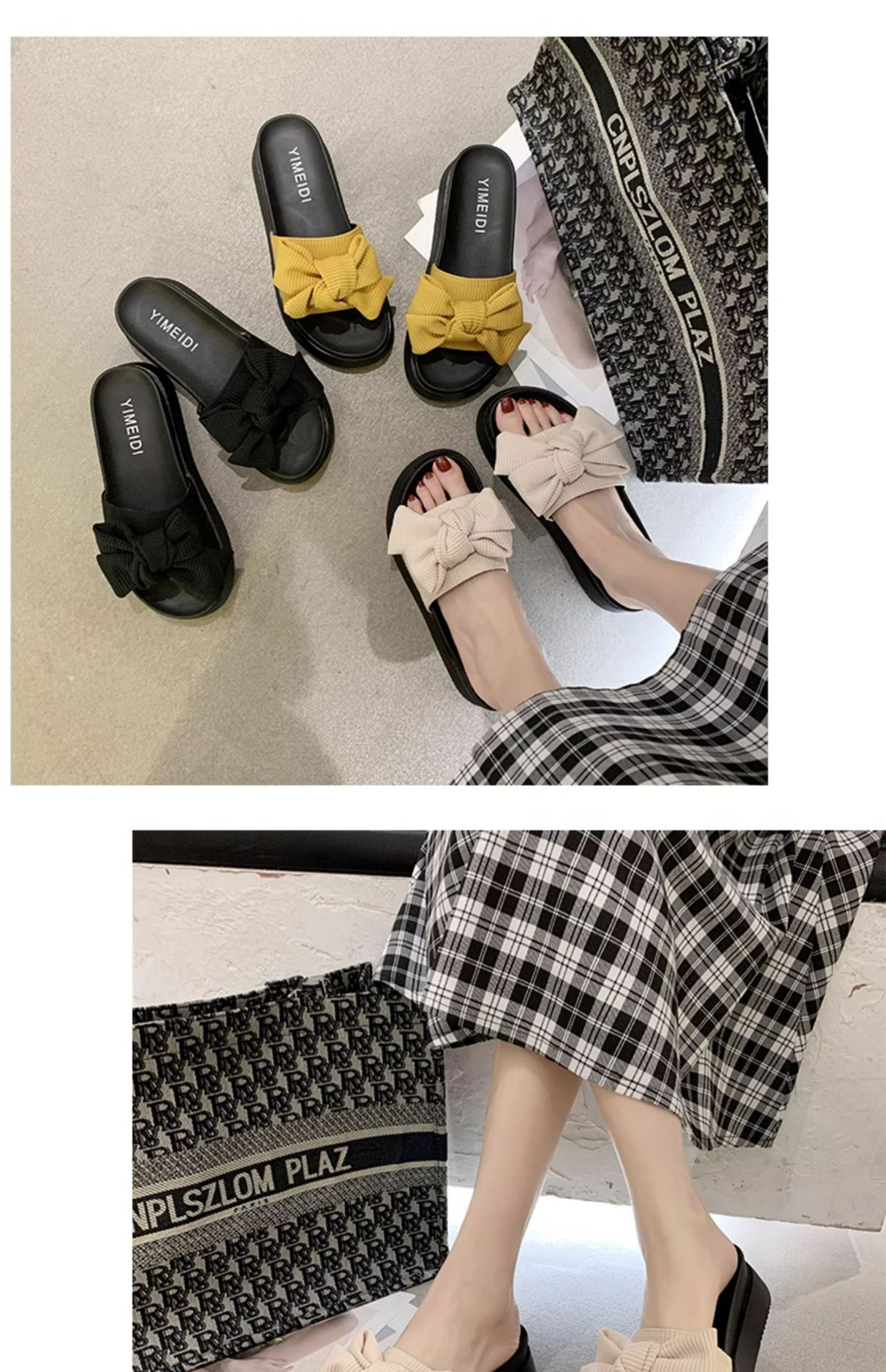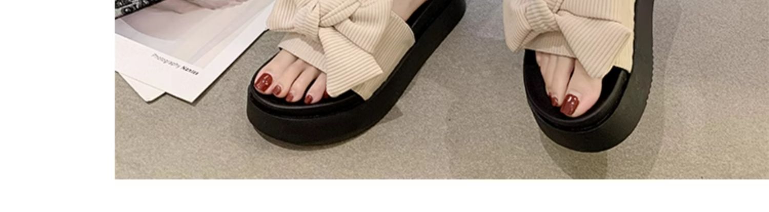 여성용 여름 아우터 슬리퍼 트렌디 도매 신작 리본 두꺼운 밑창 플랫폼 슬리퍼 다용도 비치 샌들