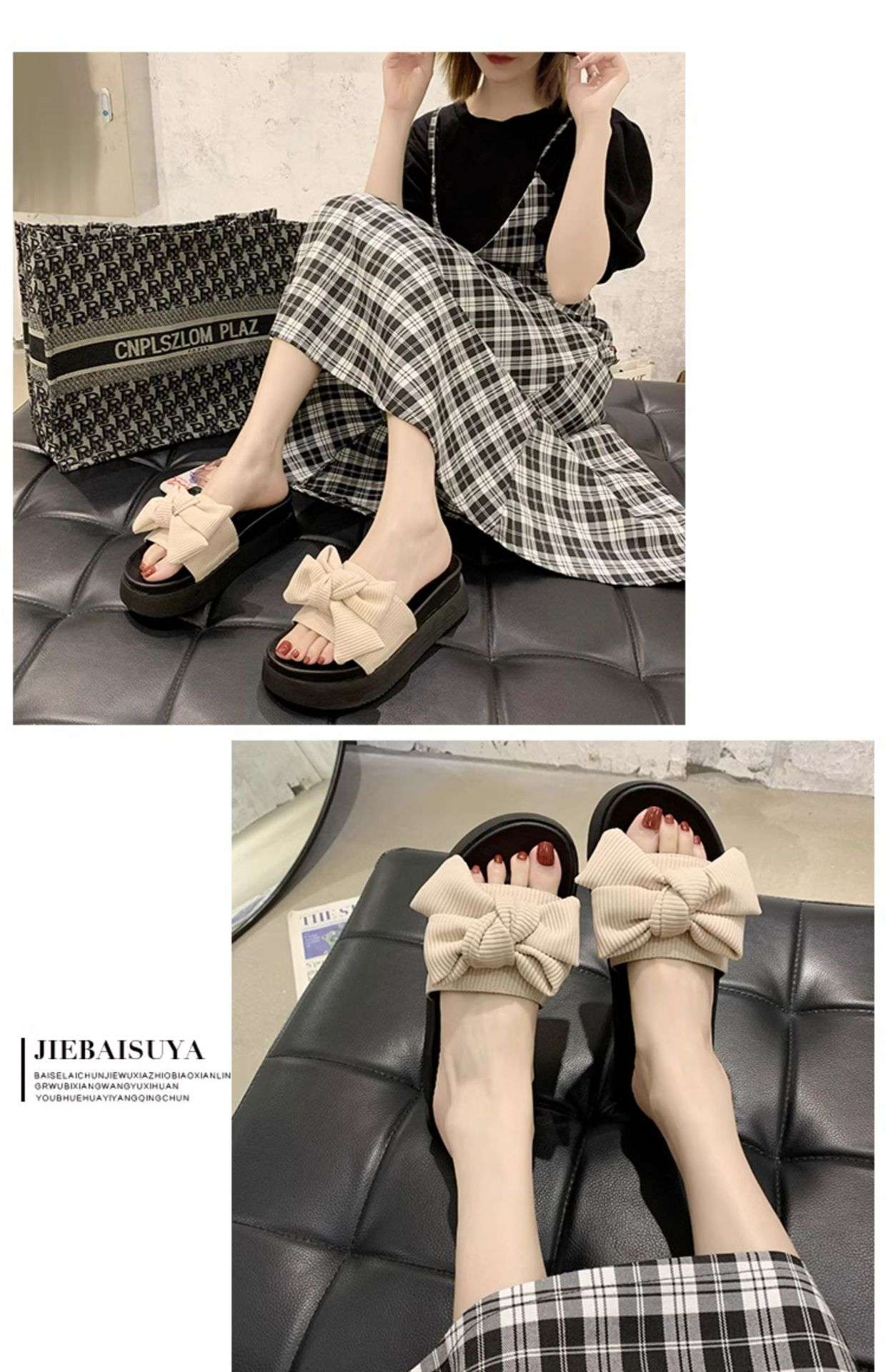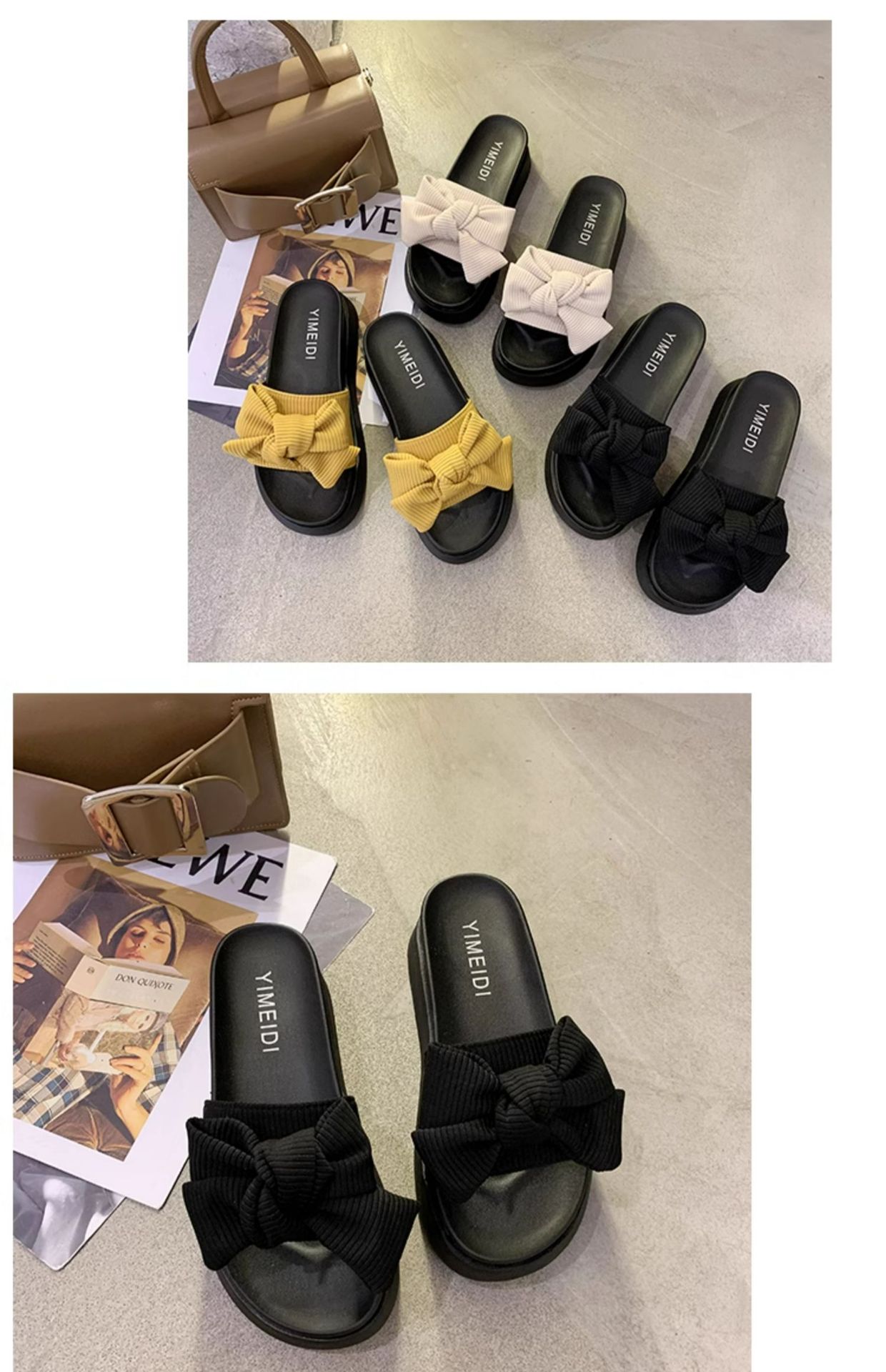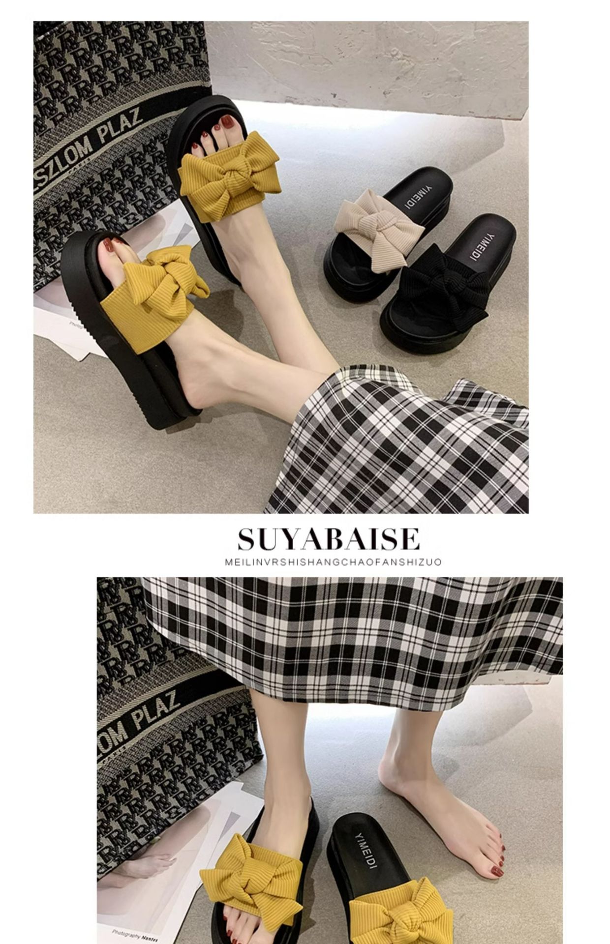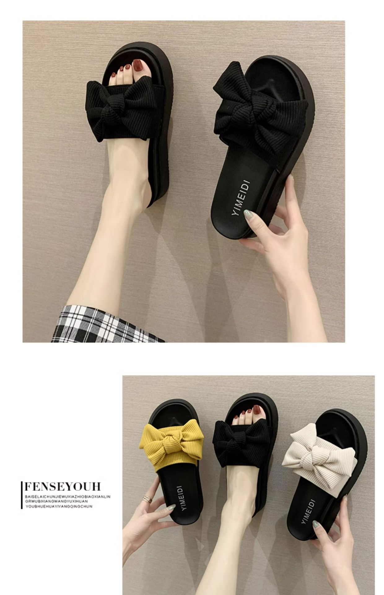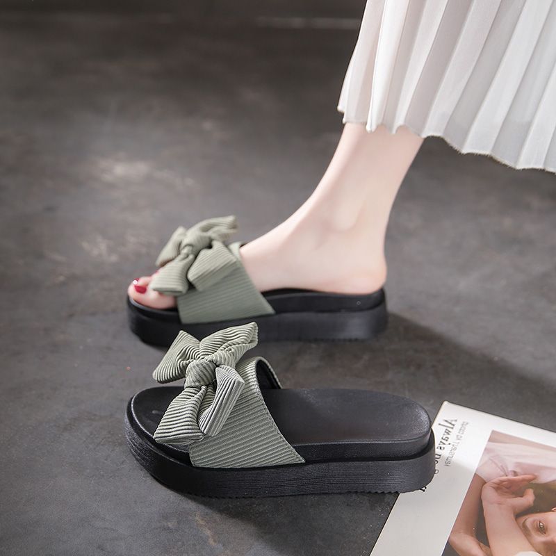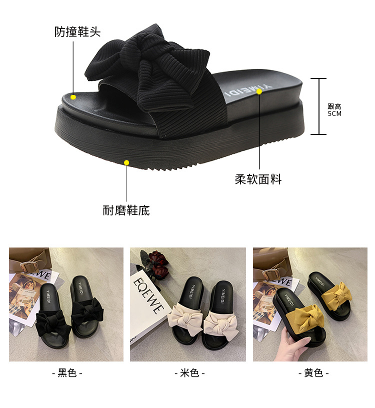 여성용 여름 아우터 슬리퍼 트렌디 도매 신작 리본 두꺼운 밑창 플랫폼 슬리퍼 다용도 비치 샌들스토어 가기