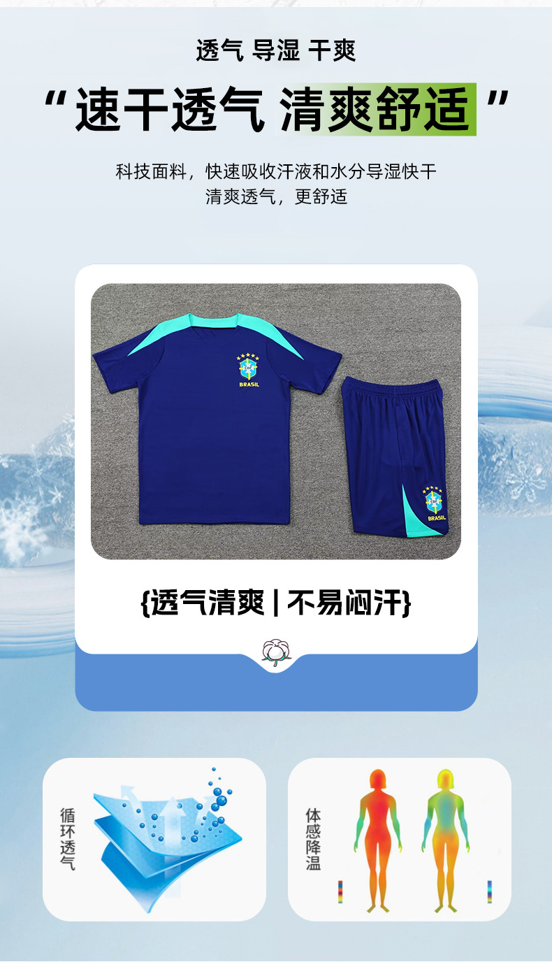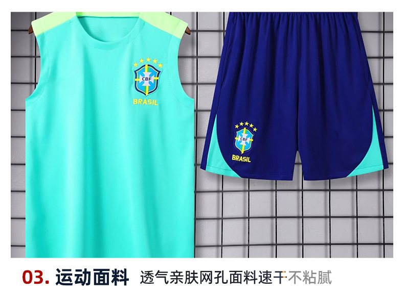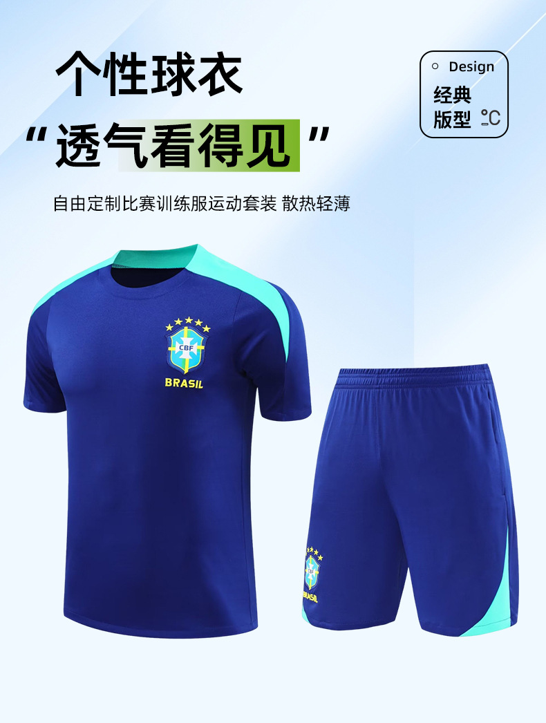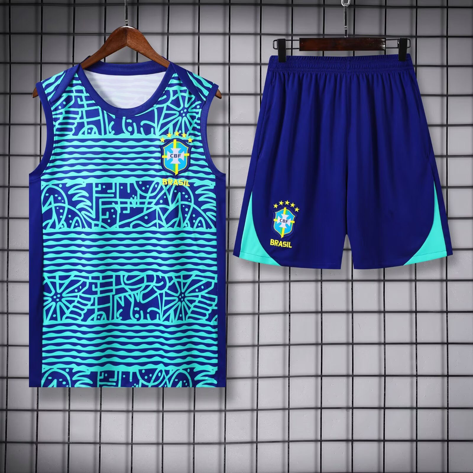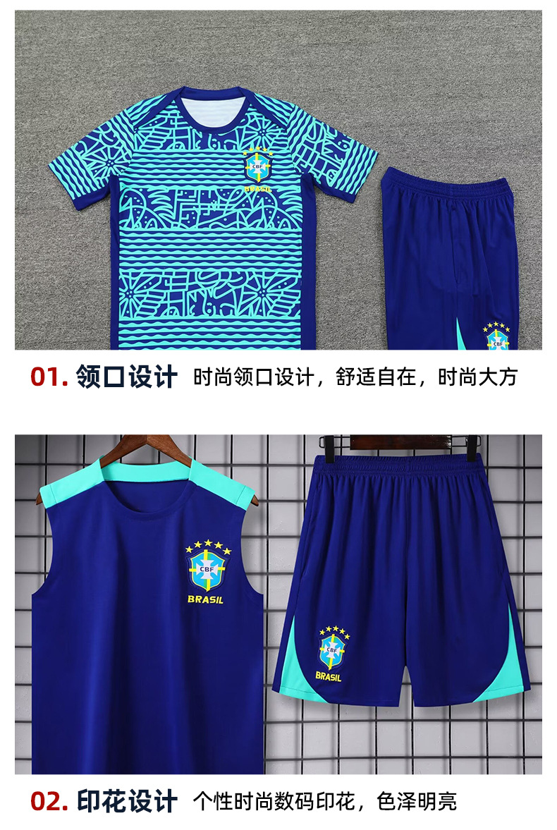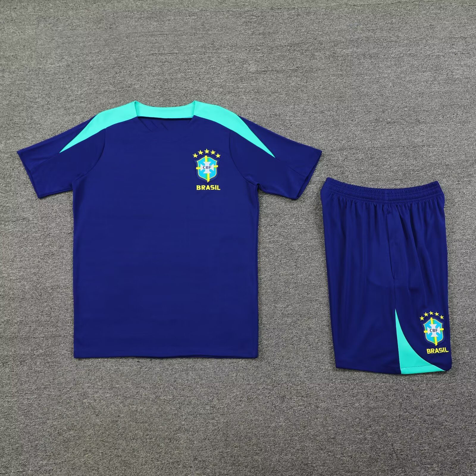24-25 시즌 브라질 저지 반팔 조끼 경기 전 워밍업 스포츠 축구 훈련복 성인 싱글 셔츠 세트