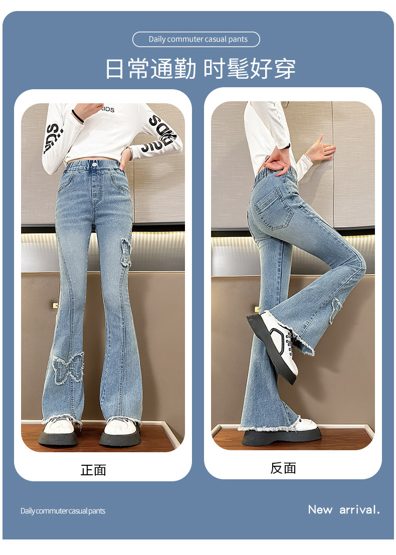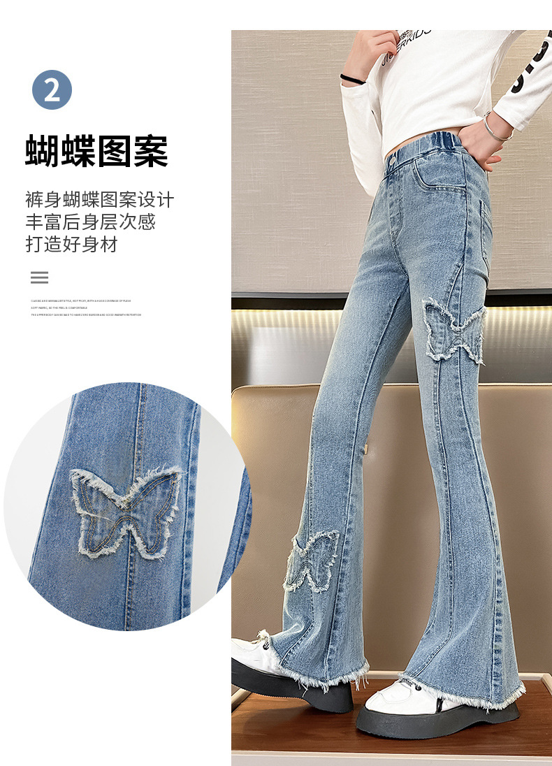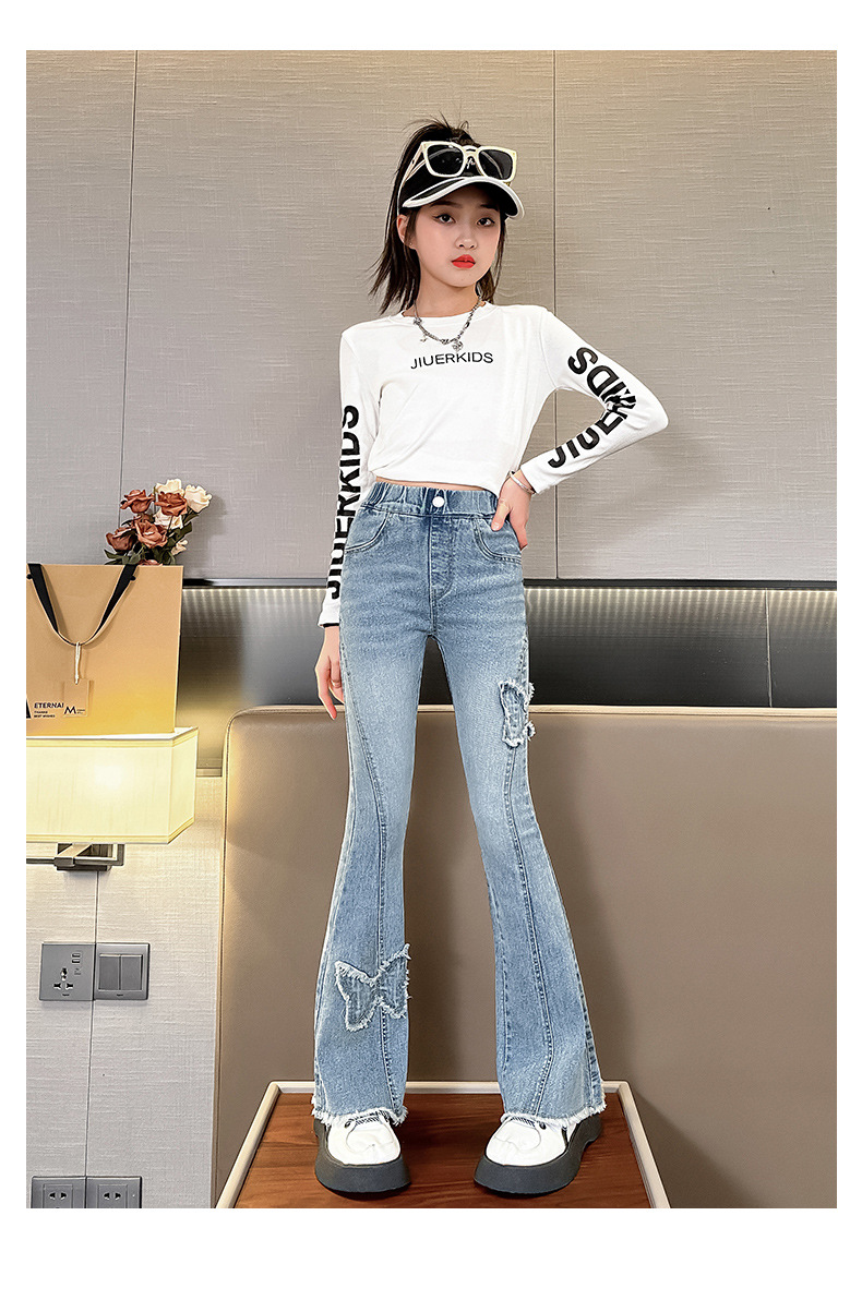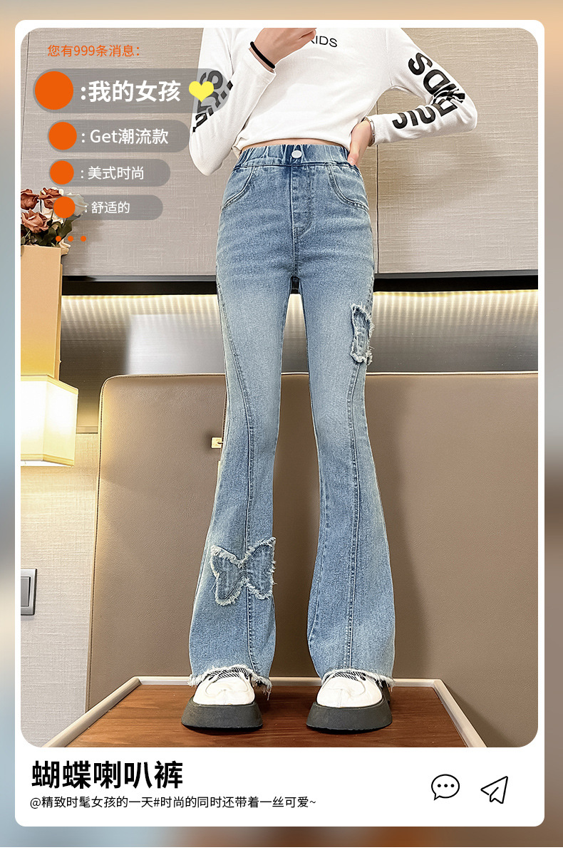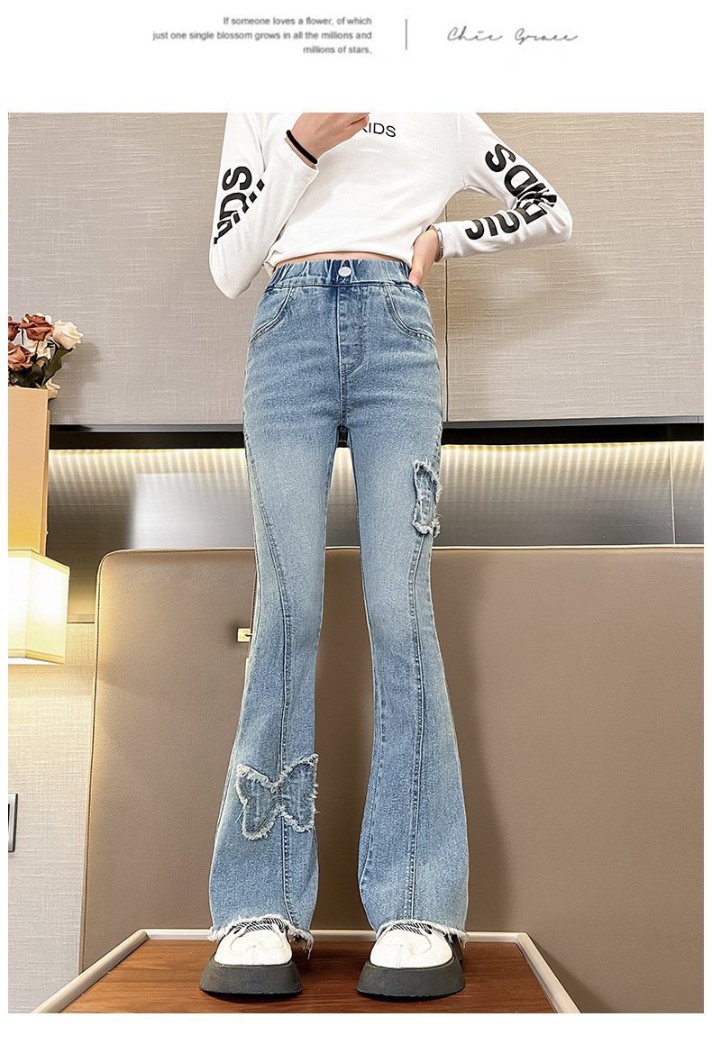 소녀 활 꽃 바지 어린이 유럽과 미국의 슬림 청바지 봄과 가을 대외 무역 큰 어린이 공주 데님 바지스토어 가기