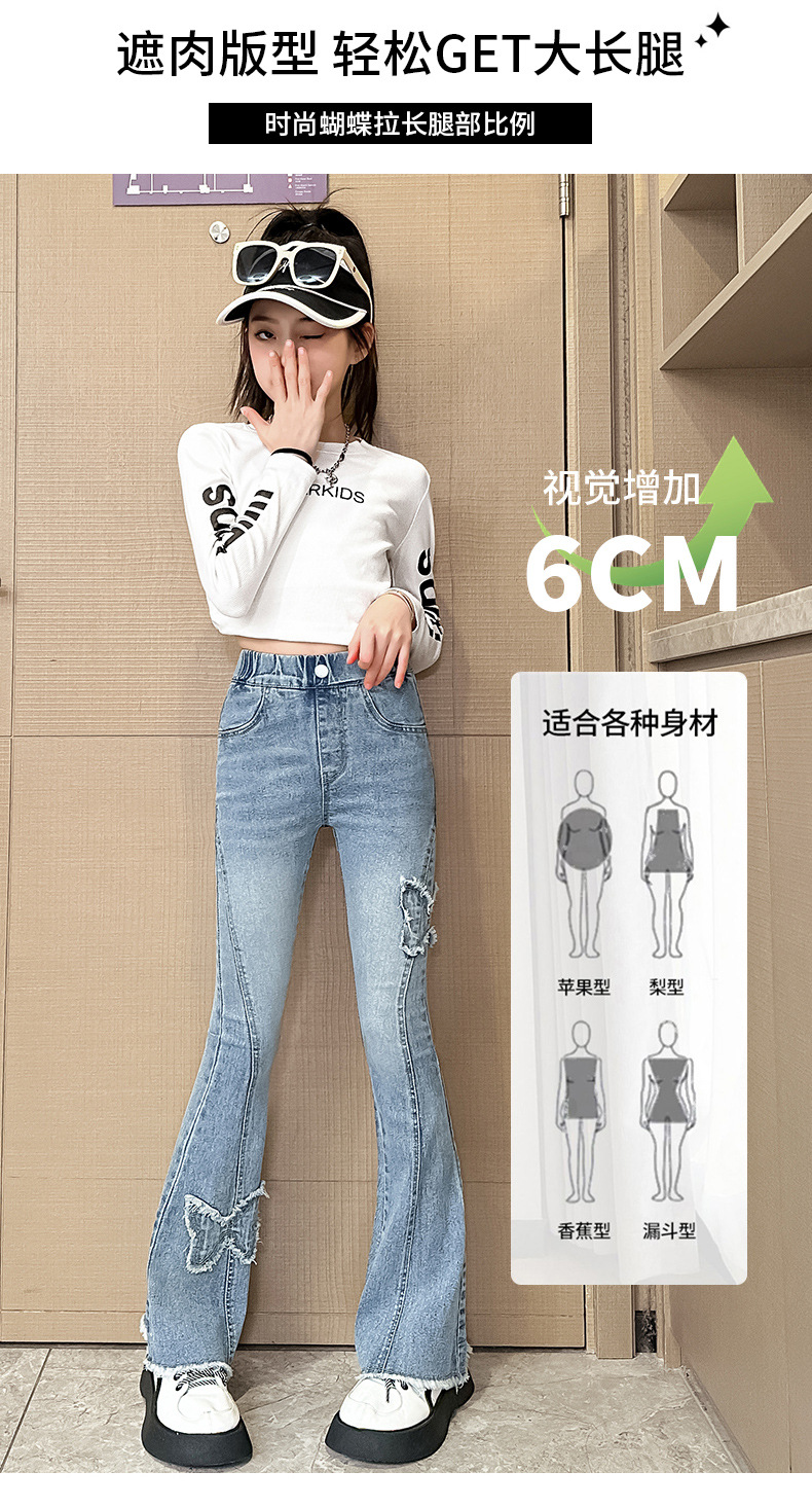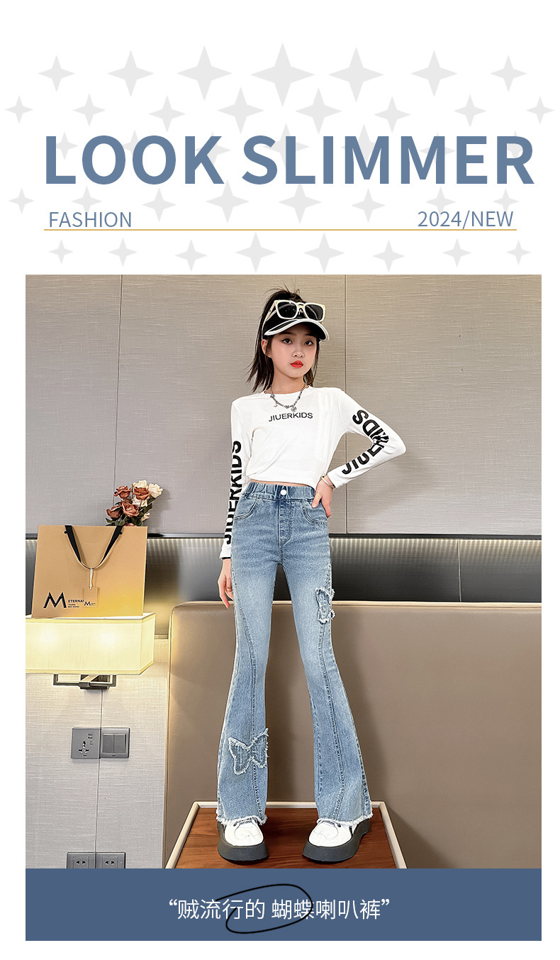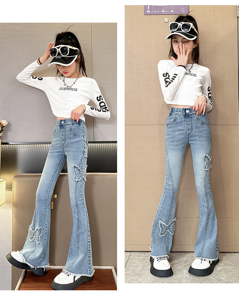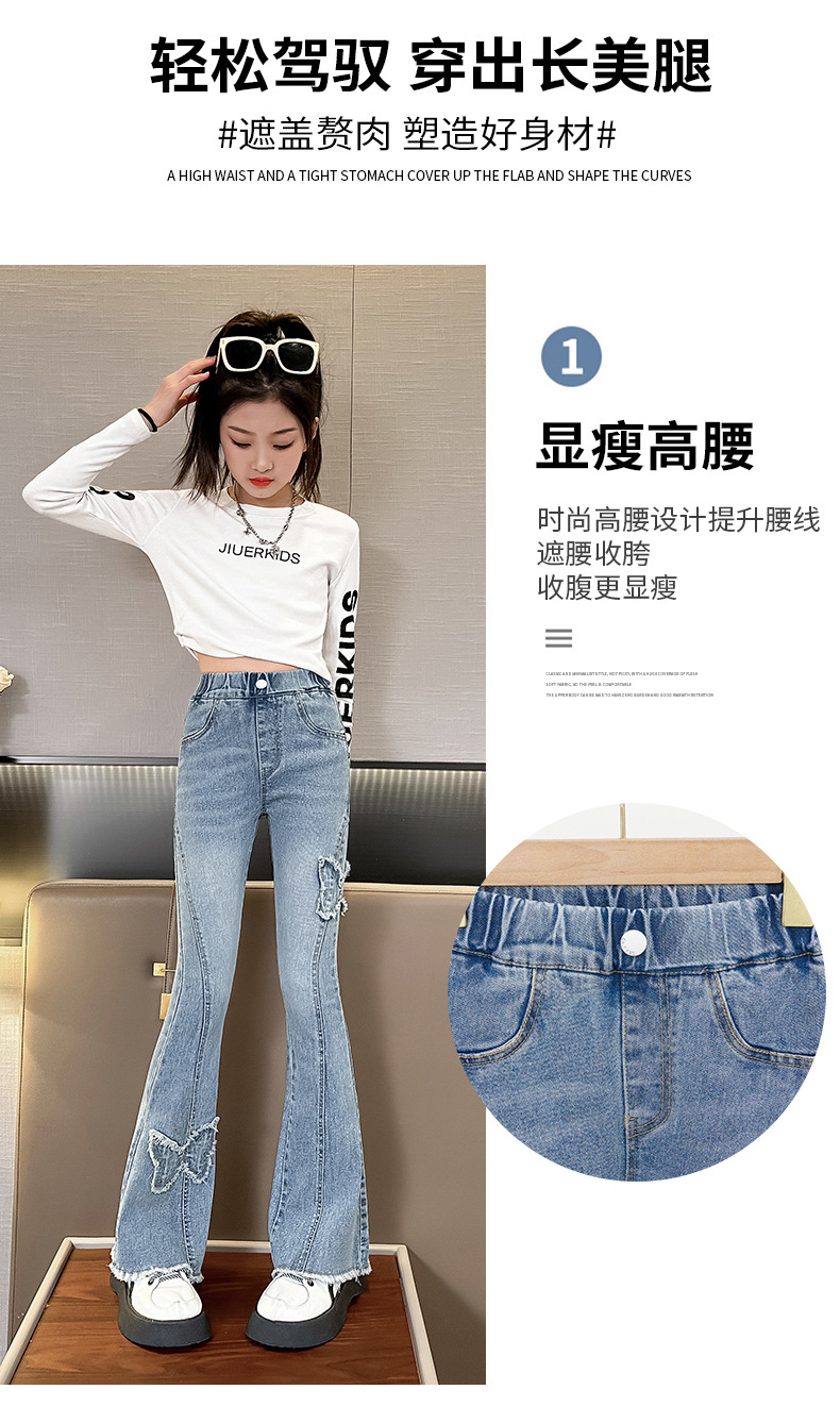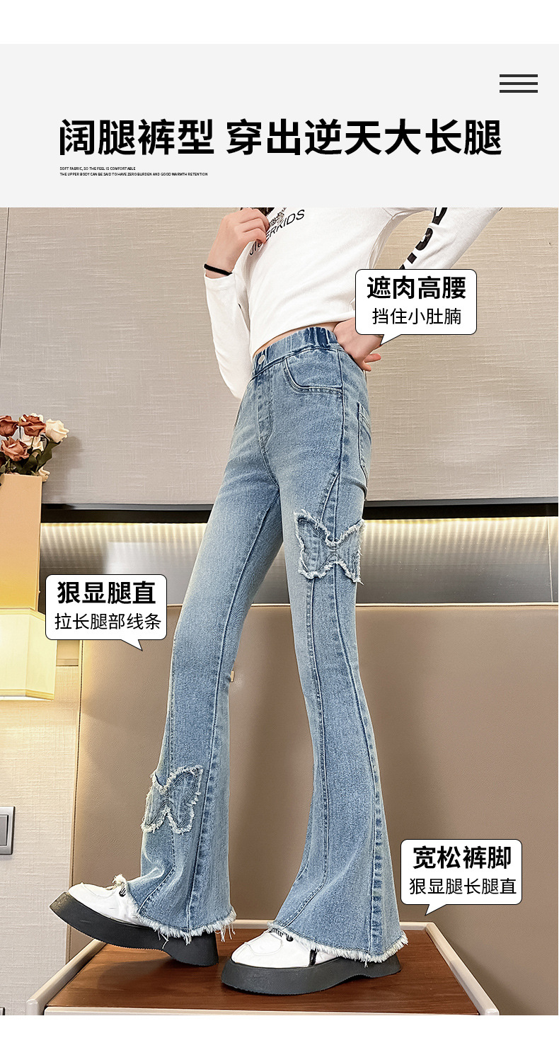 소녀 활 꽃 바지 어린이 유럽과 미국의 슬림 청바지 봄과 가을 대외 무역 큰 어린이 공주 데님 바지스토어 가기