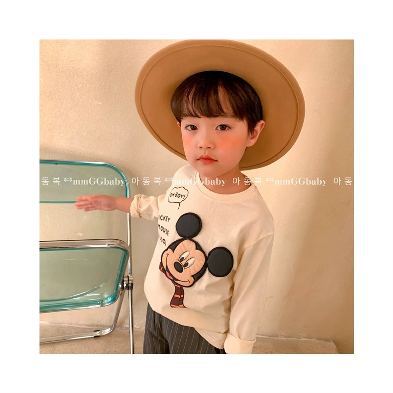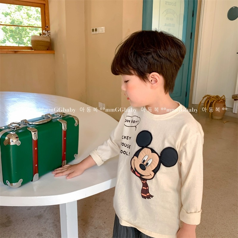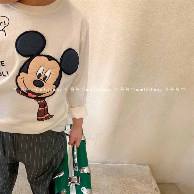 순면 남녀 아동용 티셔츠 긴팔 상의 2026년 신상 미키 만화 캐릭터 캐주얼 다용도 베이스 레이어 봄 가을스토어 가기