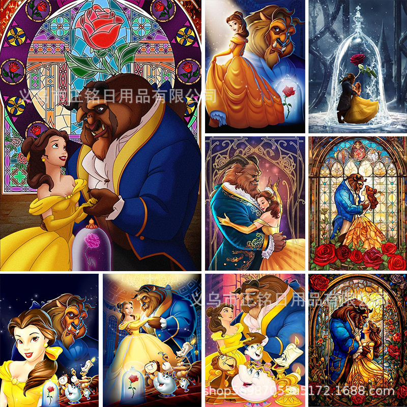 미녀와 야수 공주 5d 다이아몬드 그림 전체 다이아몬드 diy 다이아몬드 자수 장식품 거실 침실 장식 공장 도매스토어 가기