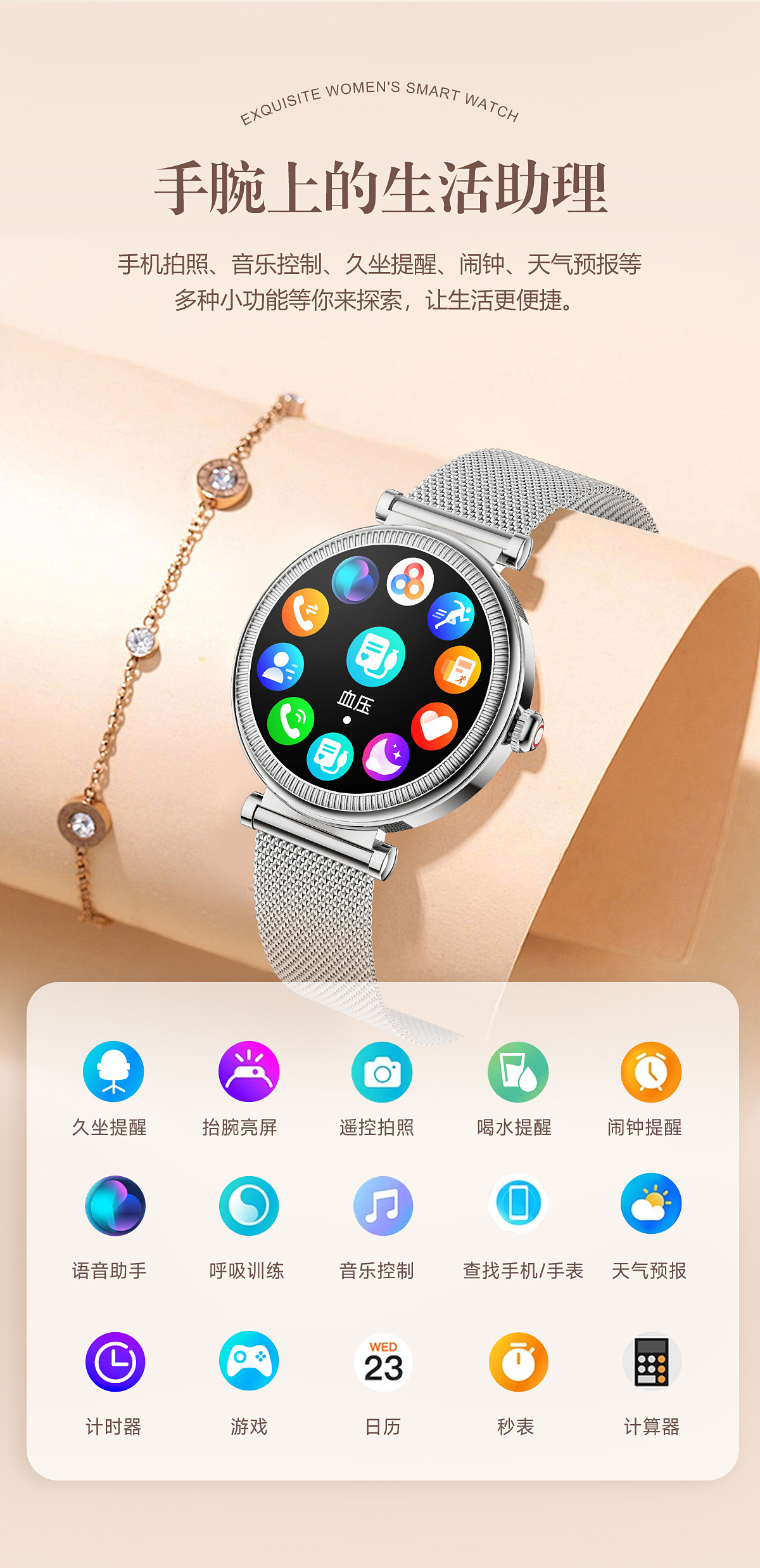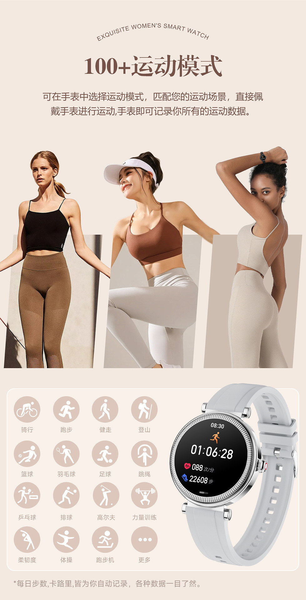 | 运动 | 计步、卡路里、距离、运动模式 |
