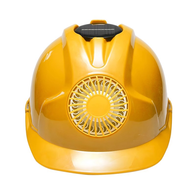 선풍기가 장착된 태양광 팬 안전모, 선도적인 통기성 안티 스매싱 헬멧, 건설 현장 자외선 차단 장치