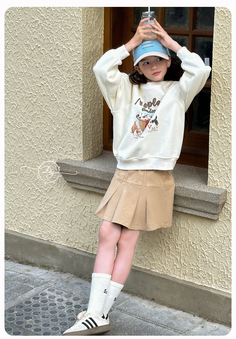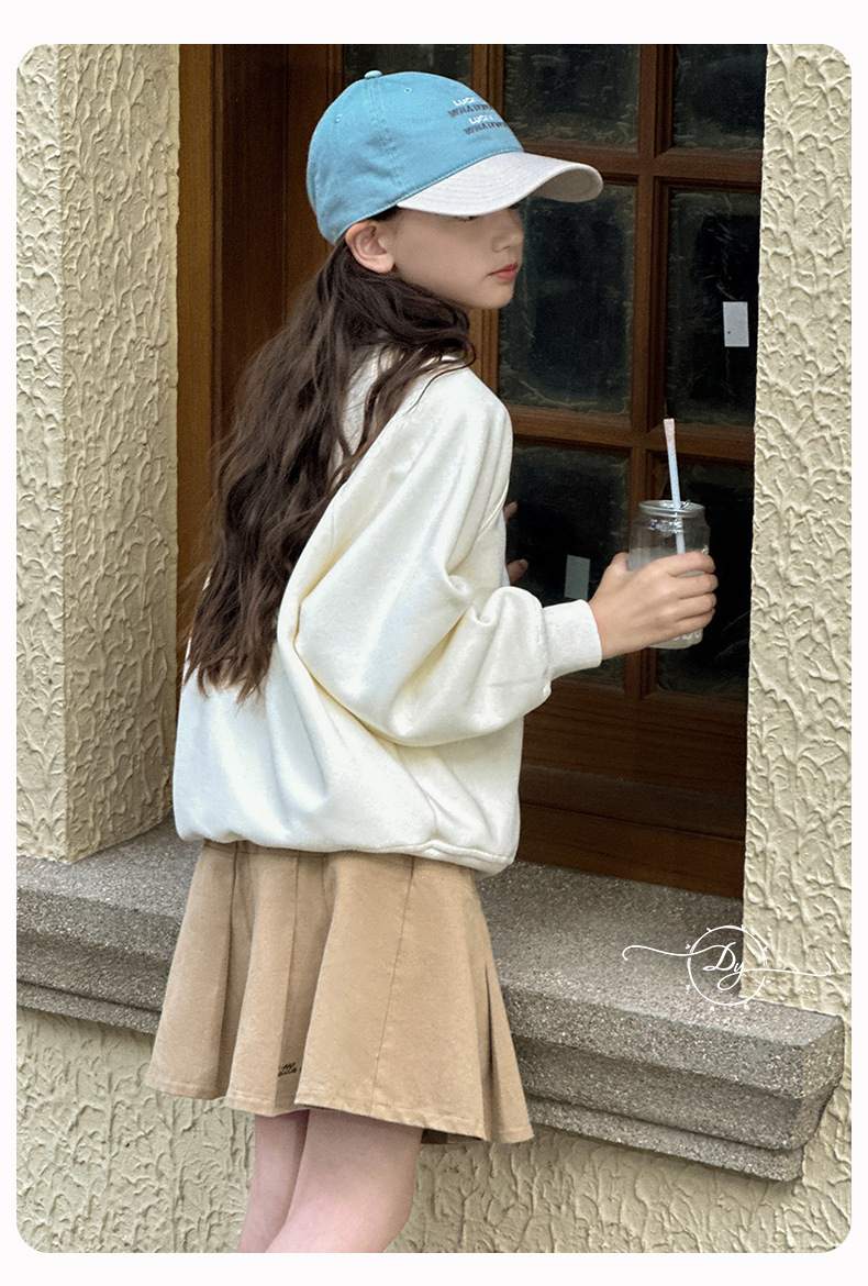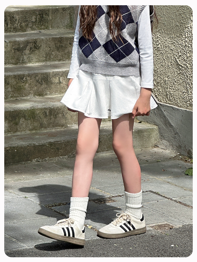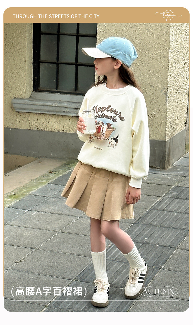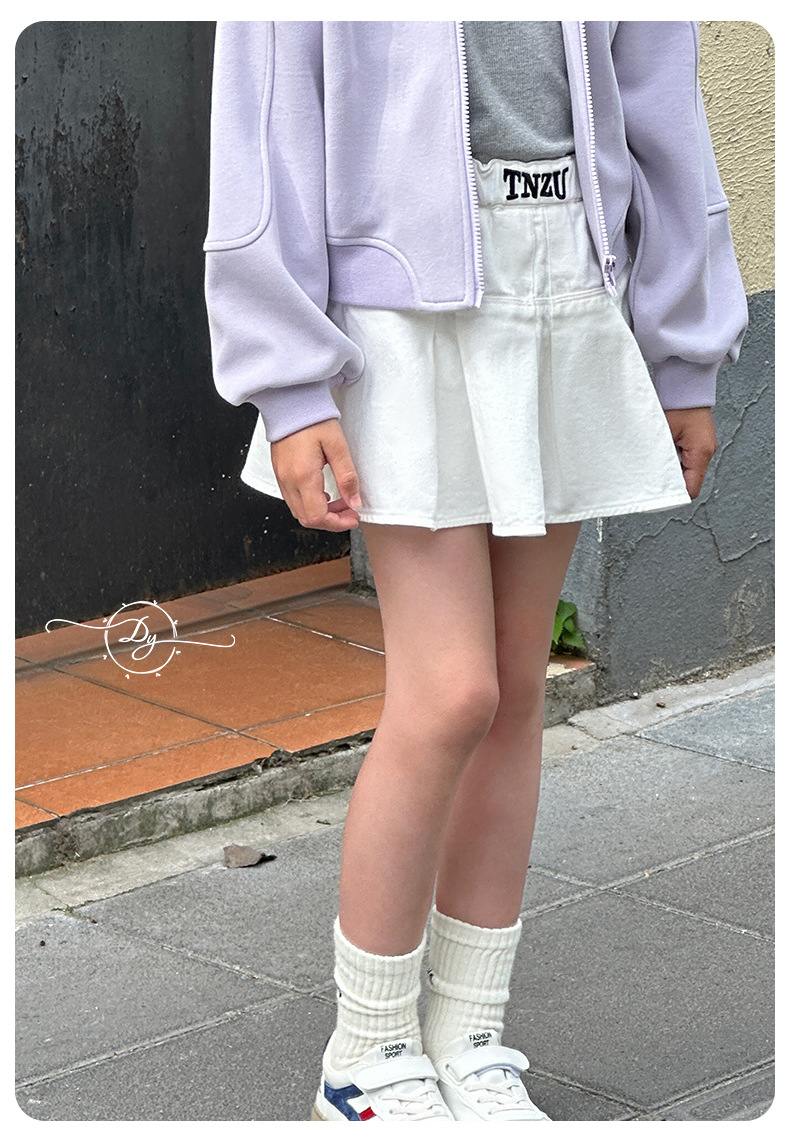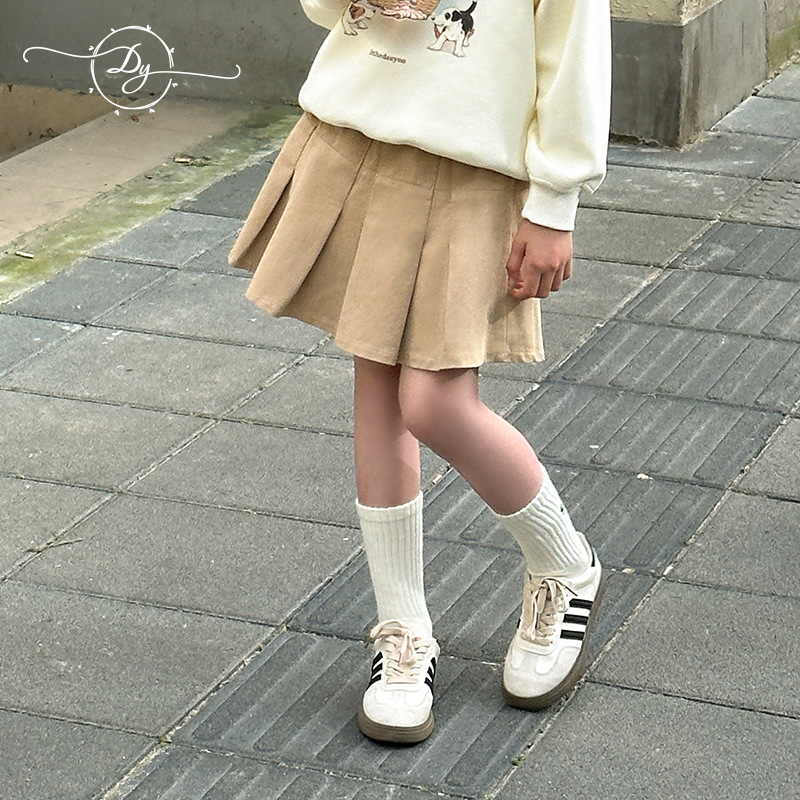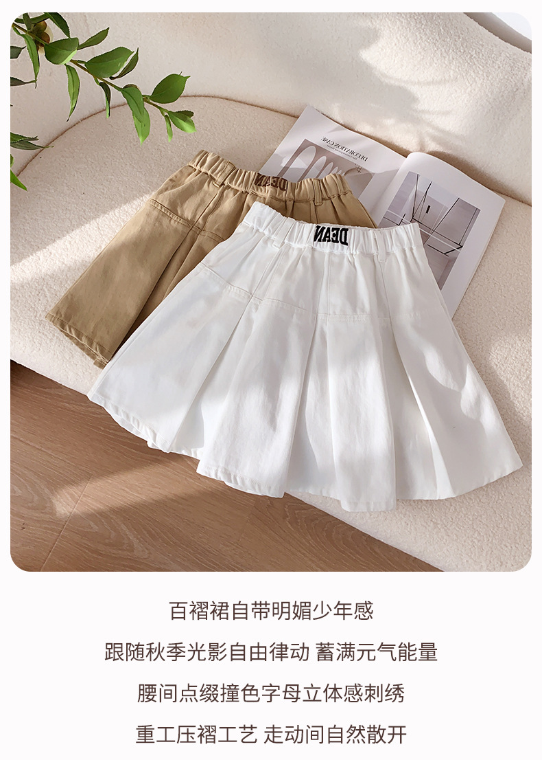 Sangluo 아동복 소녀 올 매치 오버 스커트 2024 봄과 가을 새로운 큰 아이들의 높은 허리면 눈부심 방지 어린이 주름 치마스토어 가기