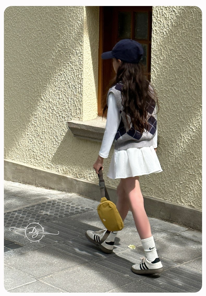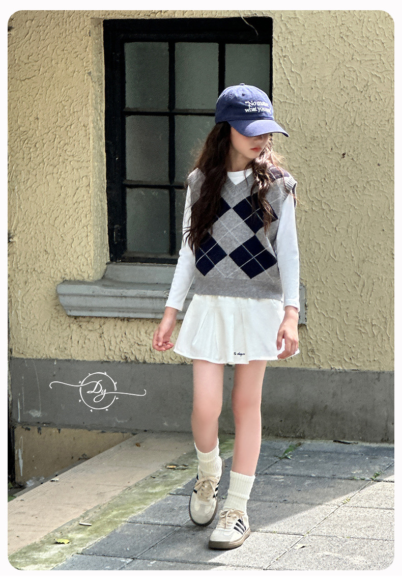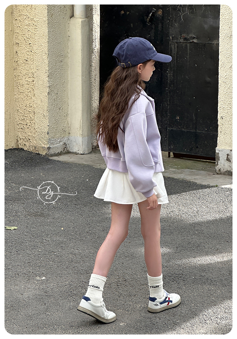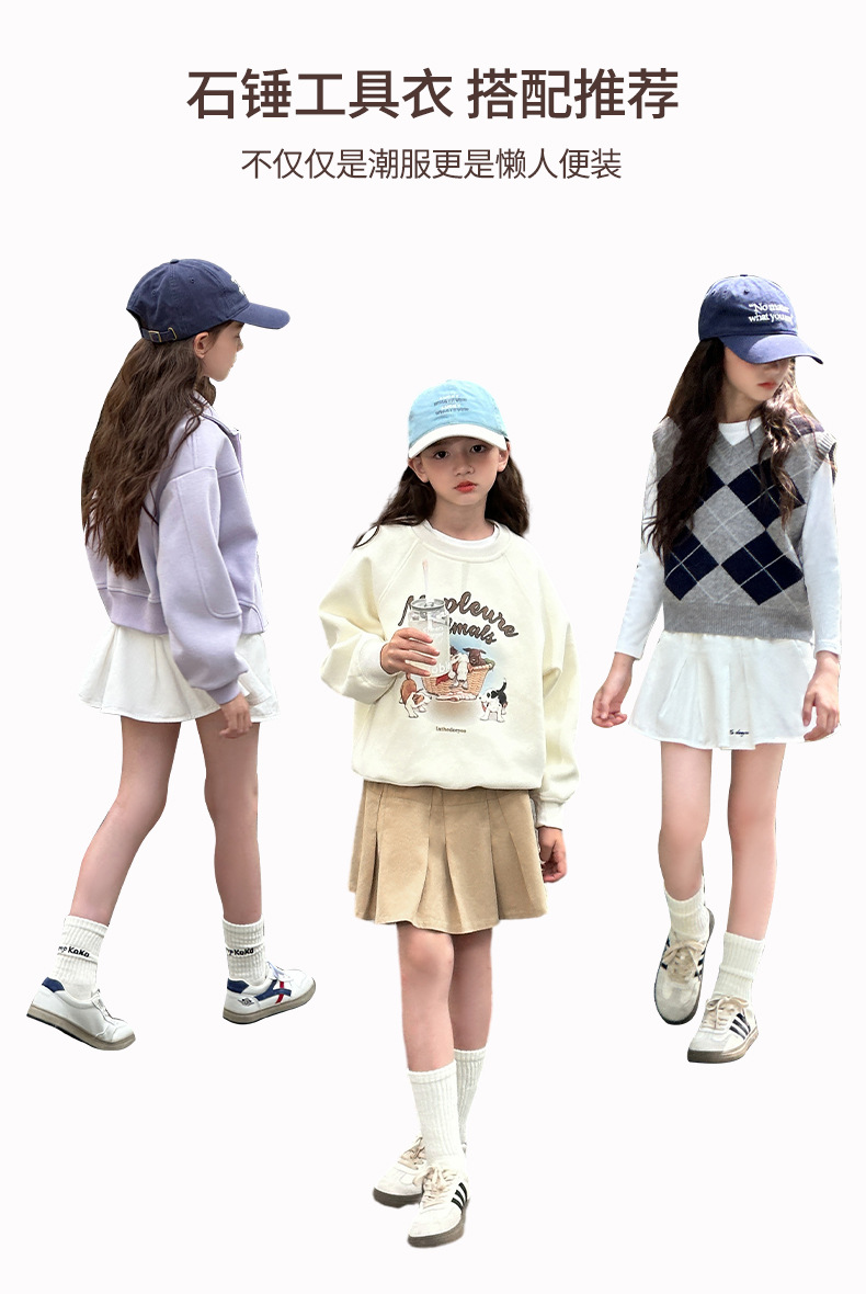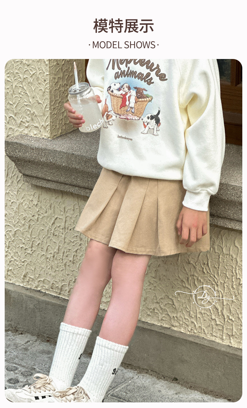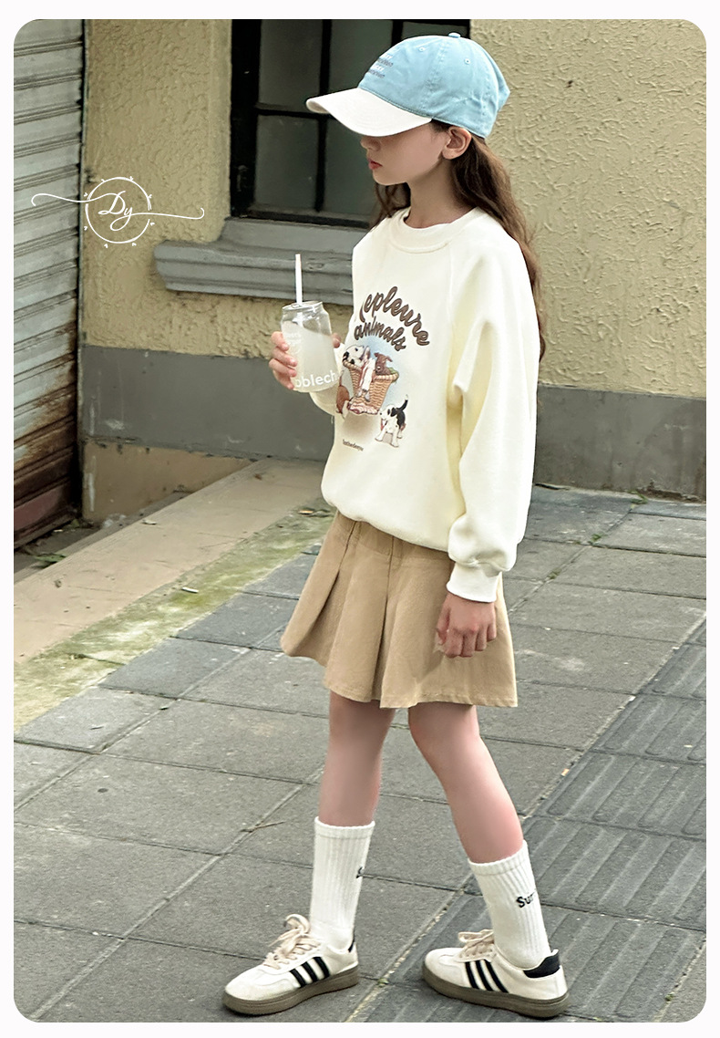 Sangluo 아동복 소녀 올 매치 오버 스커트 2024 봄과 가을 새로운 큰 아이들의 높은 허리면 눈부심 방지 어린이 주름 치마스토어 가기