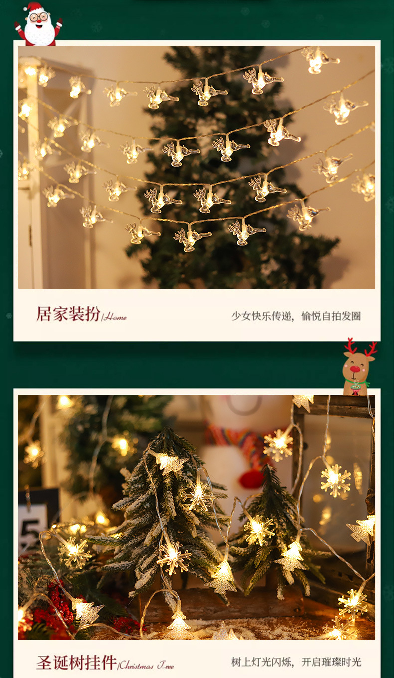 공장 LED 크리스마스 장식 빛 문자열 눈송이 종 엘크 크리스마스 트리 펜던트 분위기 빛 태양 빛 도매스토어 가기