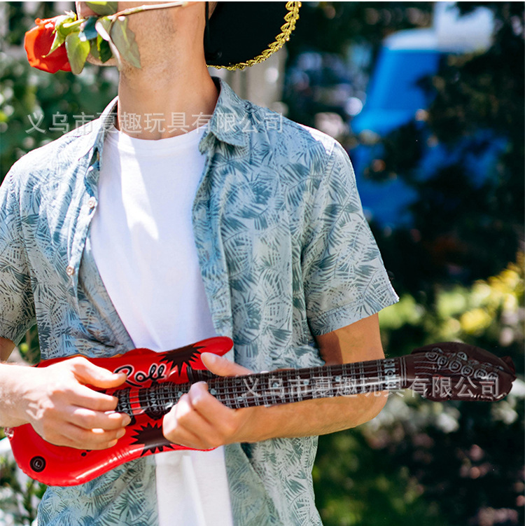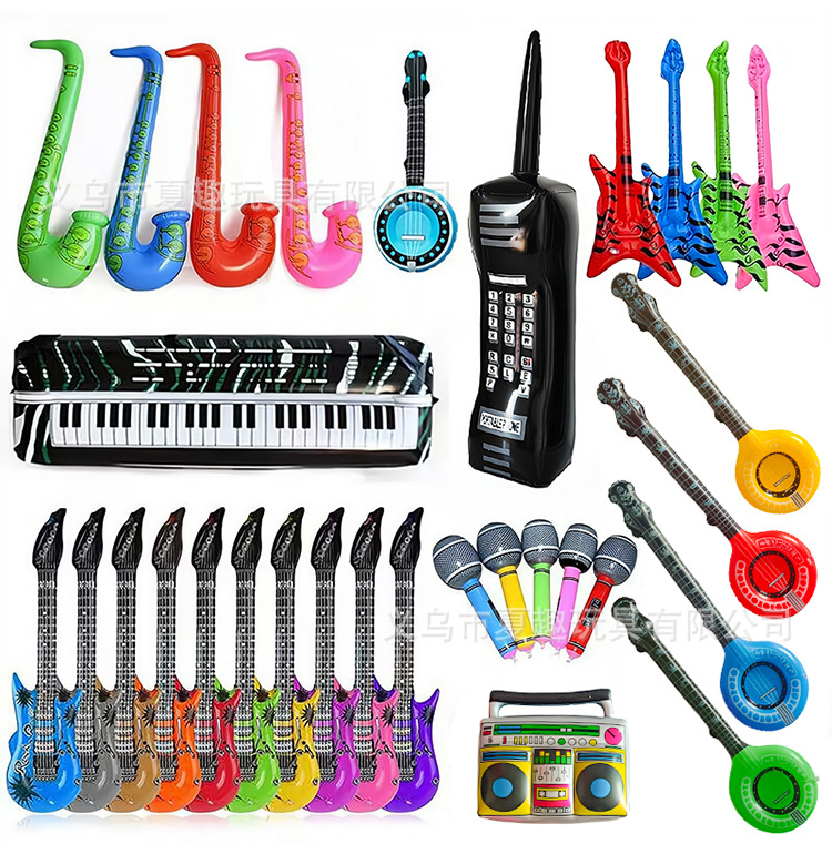 크로스 국경 재고 어린이 풍선 악기 장난감 PVC 풍선 기타 무대 파티 소품 라디오 마이크스토어 가기