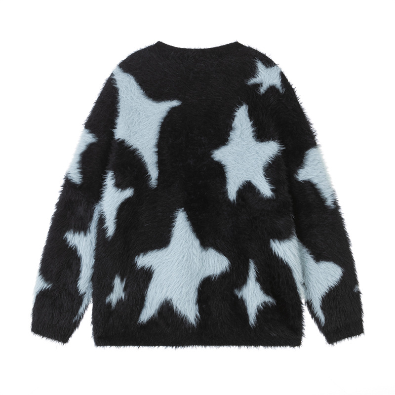 트렌디 한 브랜드 모피 니트 셔츠 크루 넥 긴팔 스타 스웨터 남자 가을 캐주얼 루즈 올 매치 커플 탑스토어 가기