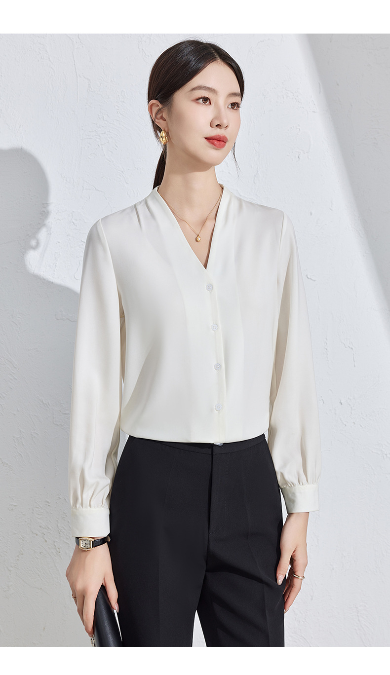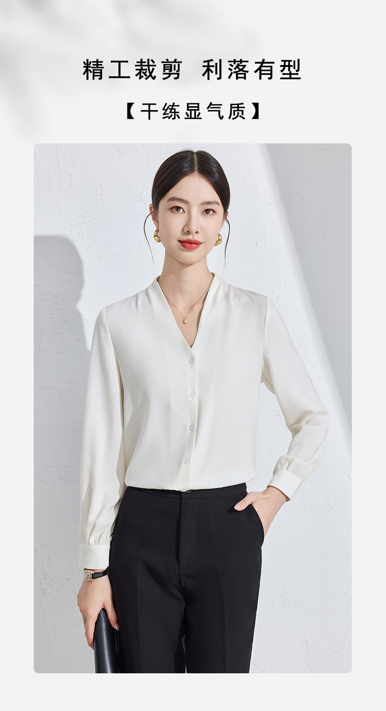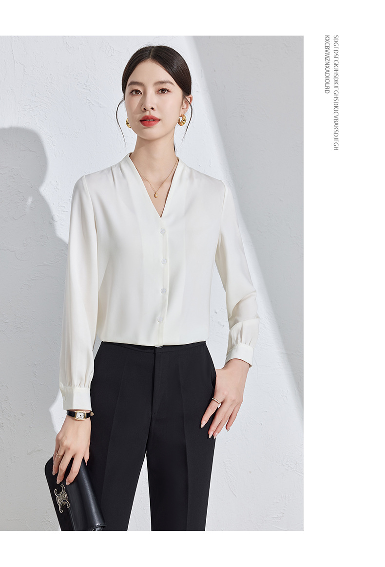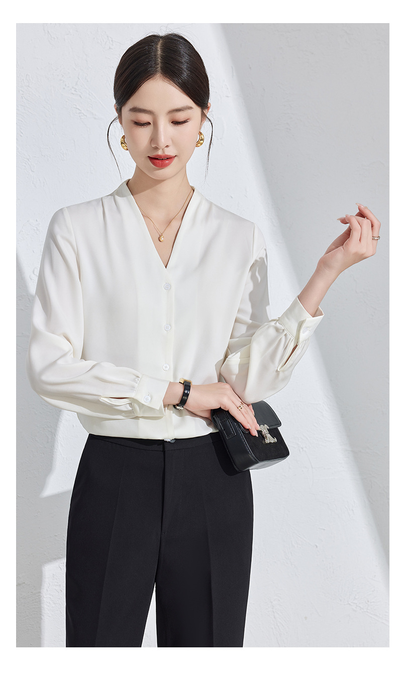 흰색 긴팔 셔츠 여성용 하이 엔드 V 넥 탑 봄과 가을 새로운 우아한 통근 전문 원피스 쉬폰 셔츠스토어 가기