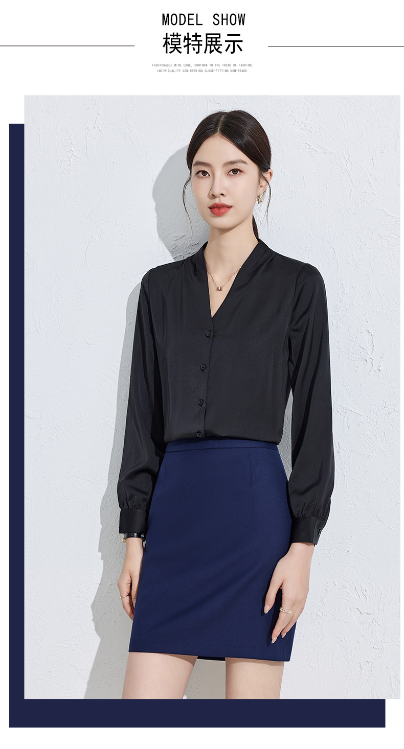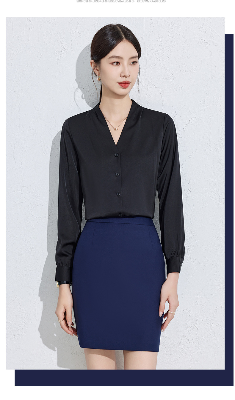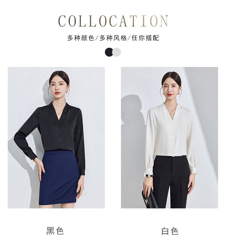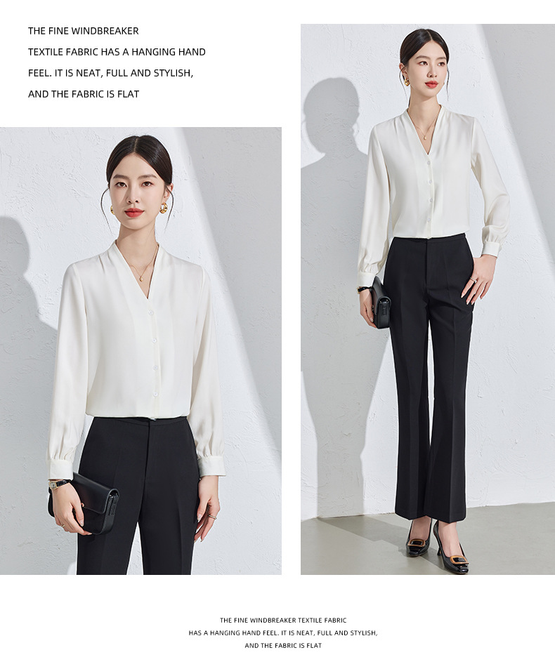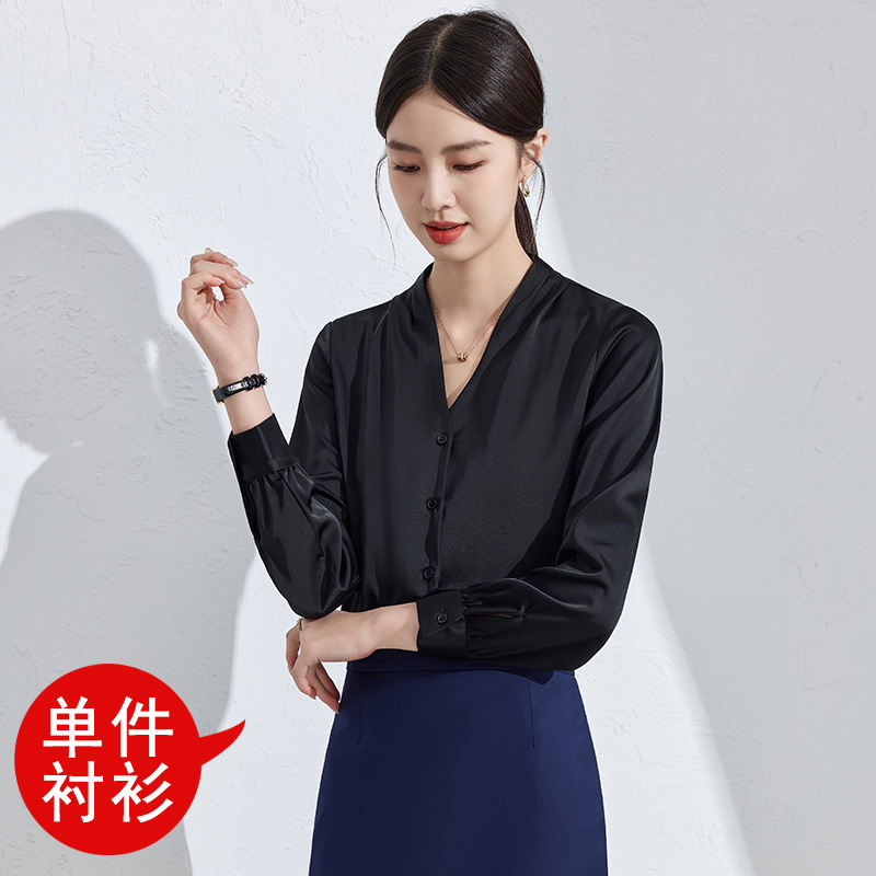 흰색 긴팔 셔츠 여성용 하이 엔드 V 넥 탑 봄과 가을 새로운 우아한 통근 전문 원피스 쉬폰 셔츠스토어 가기