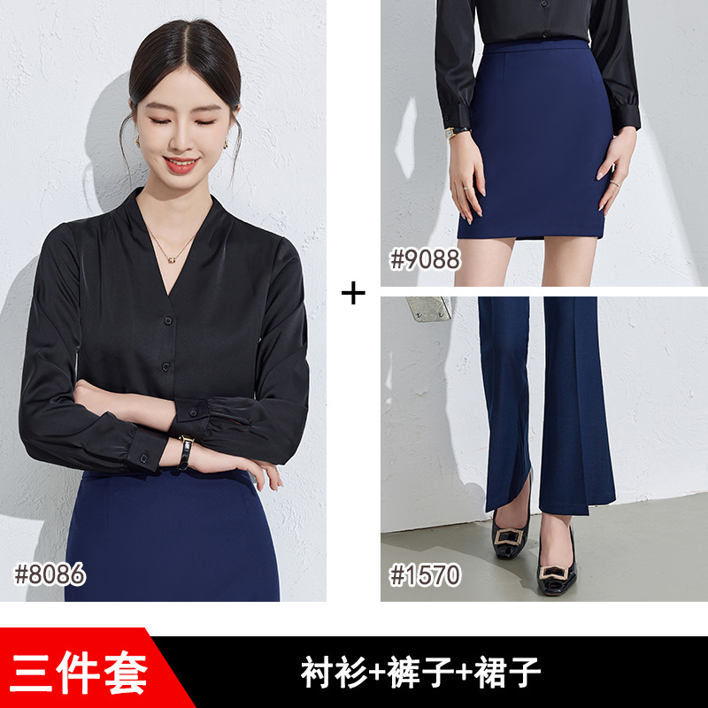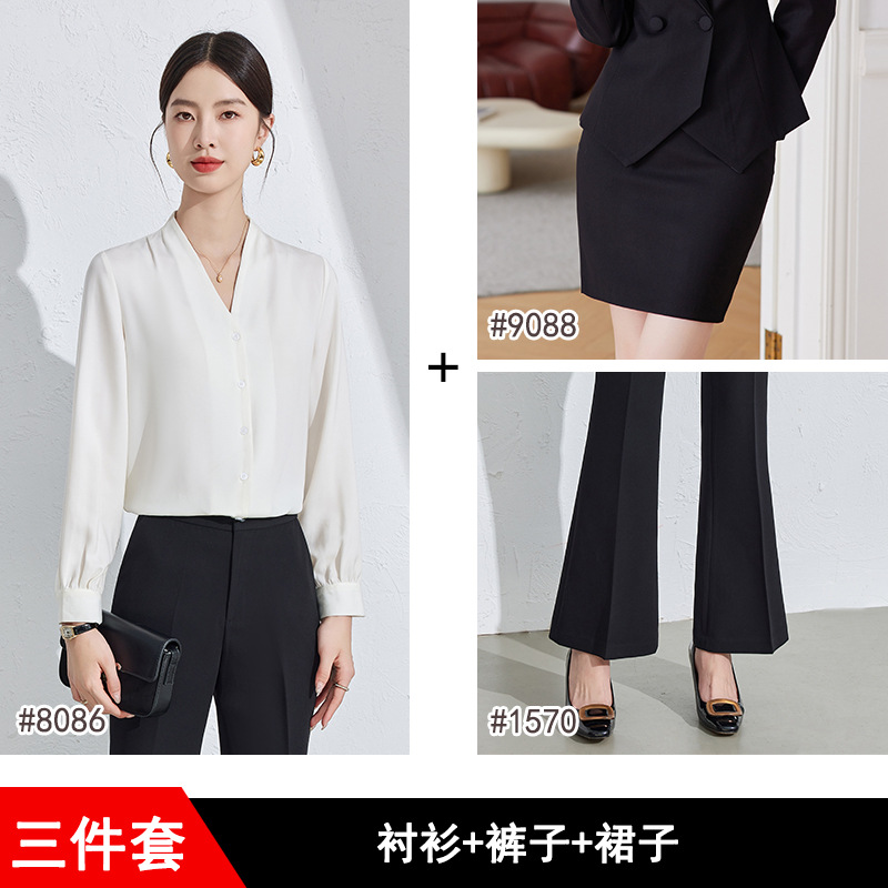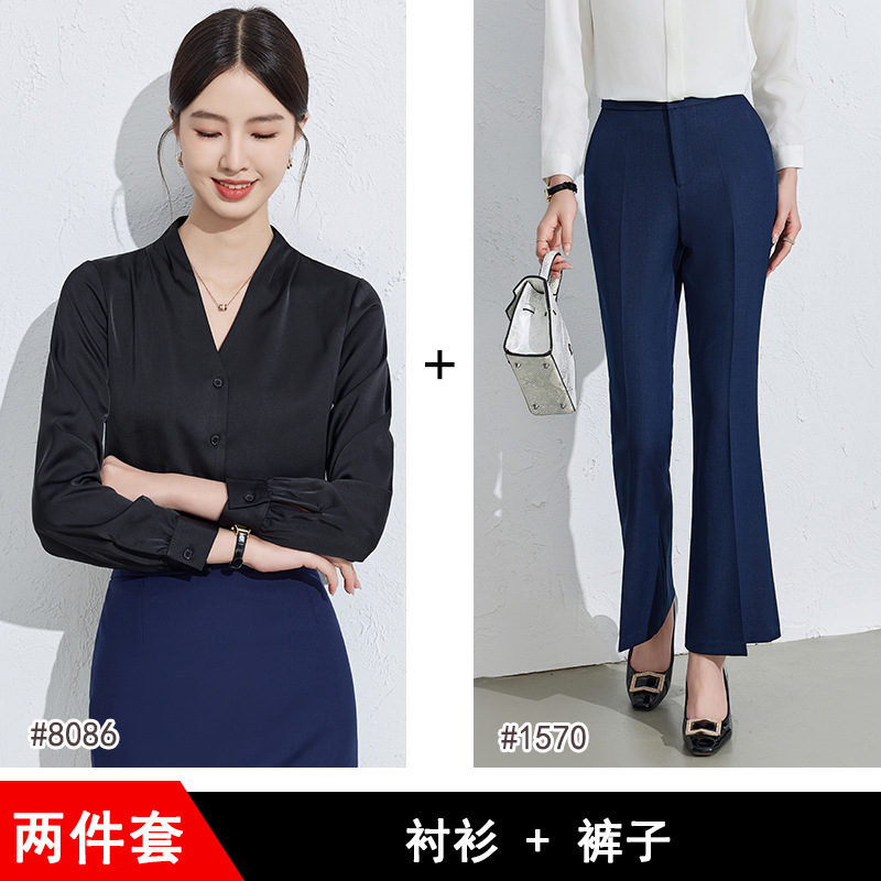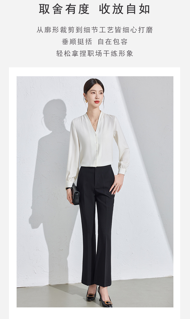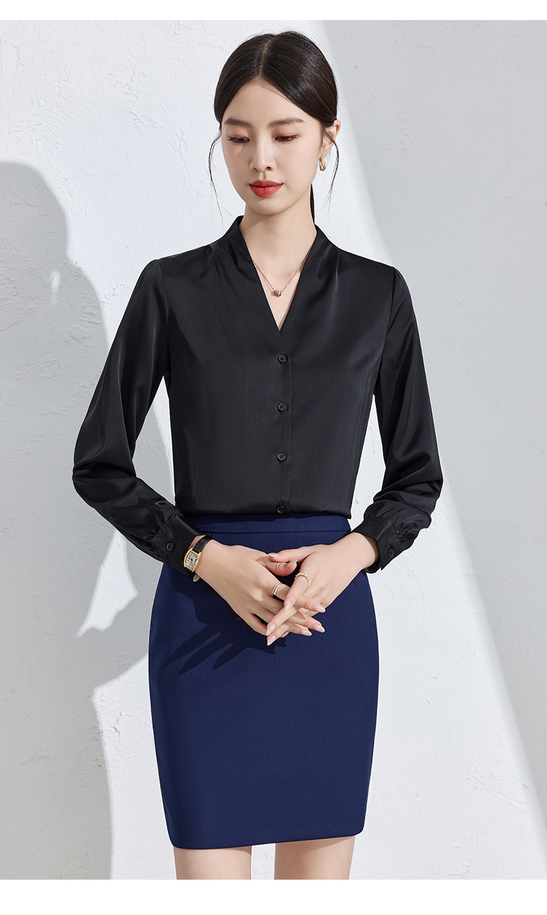 흰색 긴팔 셔츠 여성용 하이 엔드 V 넥 탑 봄과 가을 새로운 우아한 통근 전문 원피스 쉬폰 셔츠스토어 가기