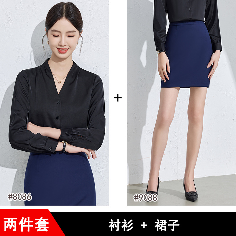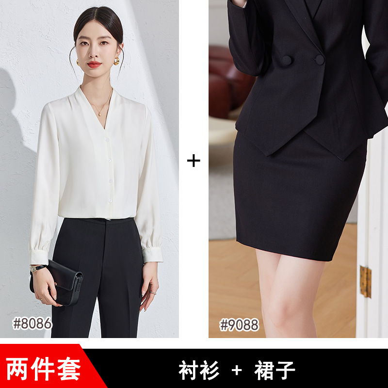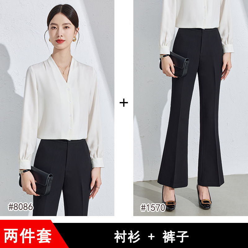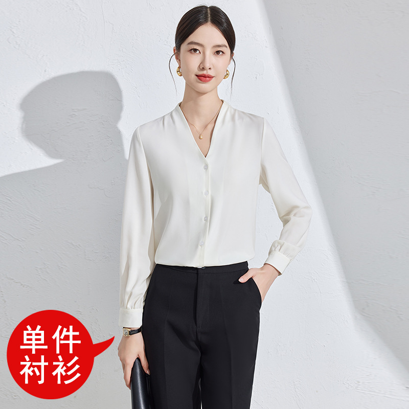 흰색 긴팔 셔츠 여성용 하이 엔드 V 넥 탑 봄과 가을 새로운 우아한 통근 전문 원피스 쉬폰 셔츠